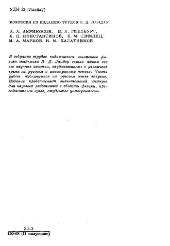 В собрание трудов выдающегося советского физика академика Л. Д. Ландау вошли почти все его научные статьи, опубликованные в различное время на русском и иностранных языках. Часть работ публикуется на русском языке впервые.