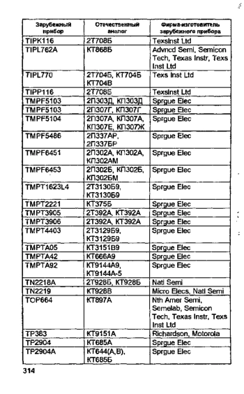 В настоящем справочнике приведены перечни различных классов отечественных транзисторов и их зарубежных аналогов с указанием фирм-изготовителей, а также зарубежных транзисторов и их отечественных аналогов. Для удобства работы отечественные и зарубежные типы транзисторов приведены в алфавитно-цифровой последовательности.