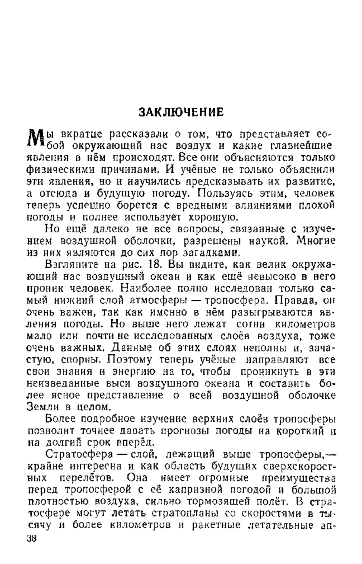 Наука о погоде и её изменениях, называется - метеорологией. Предсказания погоды стали возможными только после того, когда были изучены все явления погоды дождь и ветер, грозы и туманы, когда были установлены причины их появления. Все эти непонятые нашим далёким предкам явления не носят в себе ничего таинственного, все они подчиняются законам природы и происходят потому, что земной шар окружён воздухом, или, как принято называть в науке, атмосферой (по-гречески атмос — воздух, дыхание, пар, сфайра — сфера, шар, оболочка). Что же представляет собою окружающий нас воздушный океан? Каковы его размеры и свойства? Каким образом зарождаются в нём явления погоды? Ответам на эти вопросы и посвящена настоящая книжка.