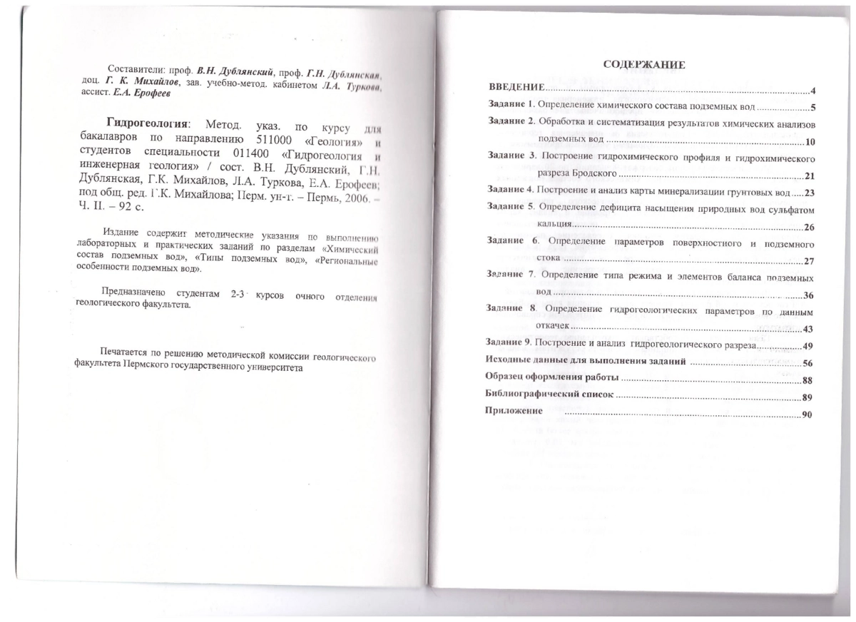 Издание содержит методические указания по выполнению лабораторных и практических заданий по разделам «Химический состав подземных вод», «Типы подземных вод», «Региональные особенности подземных вод».