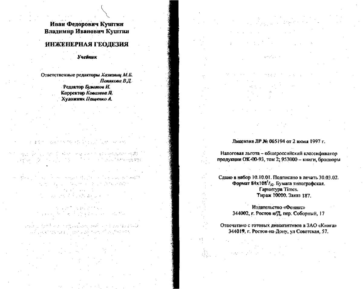 Изложены общие сведения по геодезии, топографии, теории ошибок измерений, вопросы использования инженерно-геодезических работ в строительстве. Описаны методы разбивочных работ, геодезического обеспечения строительства гражданских и промышленных зданий, линейных сооружений, вопросы наблюдения за деформациями сооружений, геодезического обеспечения кадастра. Дан раздел геодезического использования спутниковых технологий.