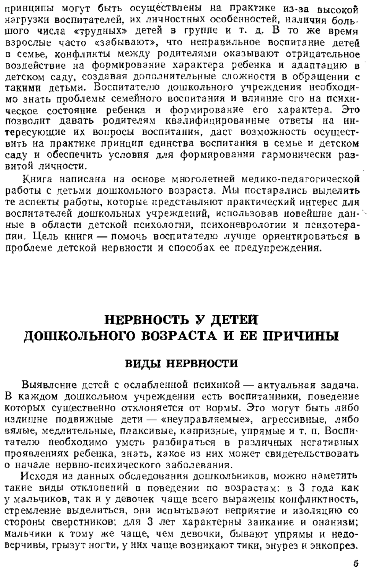 В книге рассматриваются причины нервно-психических нарушений и психолого-педагогические методы предупреждения отклонений в поведении дошкольников. Автор подчеркивает, что использование с профилактическими целями игры, рисования, индивидуальные контакты с воспитанниками, а также беседы с их родителями помогают решать задачи укрепления здоровья детей, правильного формирования личности растущего человека.