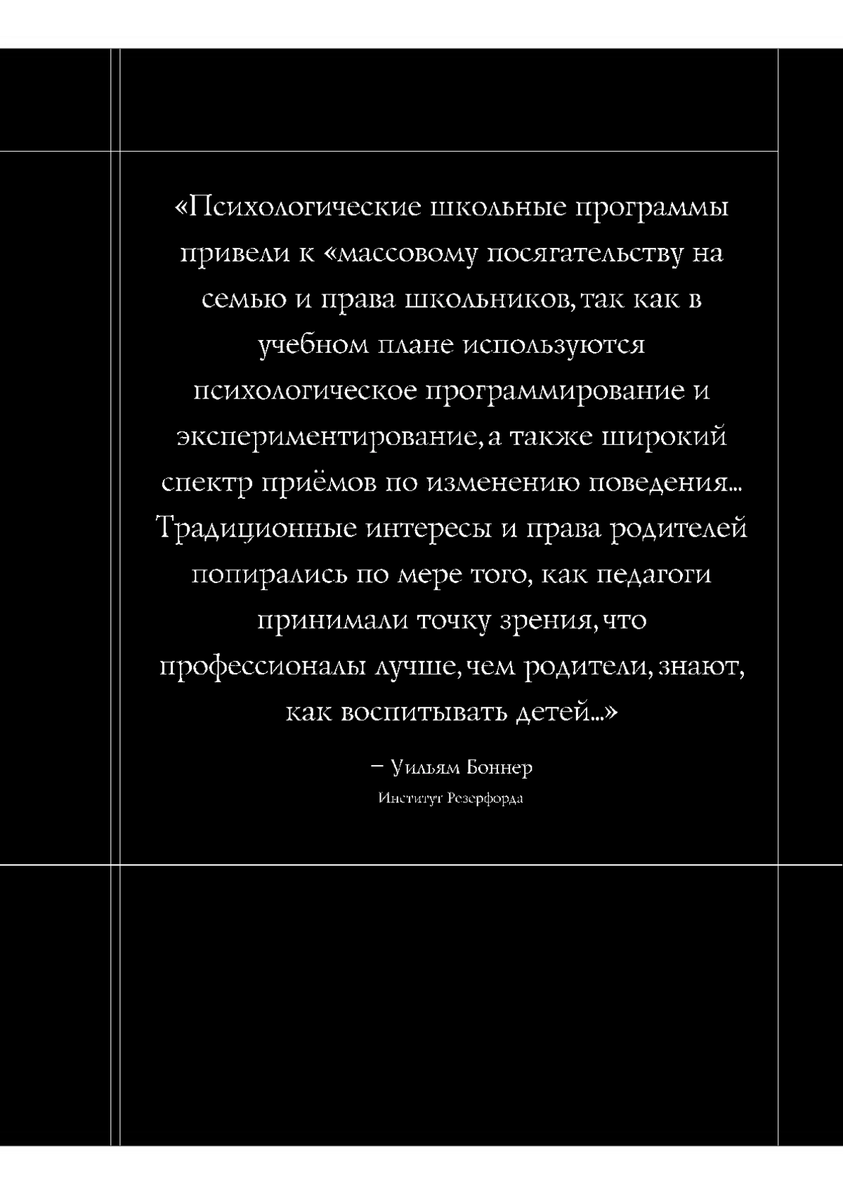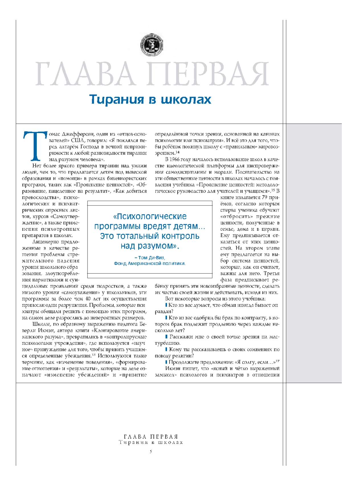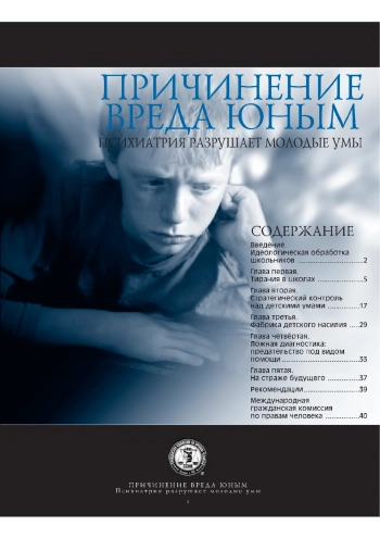 Содержание. Идеологическая обработка школьников – Тирания в школах – Стратегический контроль над детскими умами – Фабрика детского насилия – Ложная диагностика: предательство под видом помощи – На страже будущего Рекомендации – международная гражданская комиссия по правам человека.