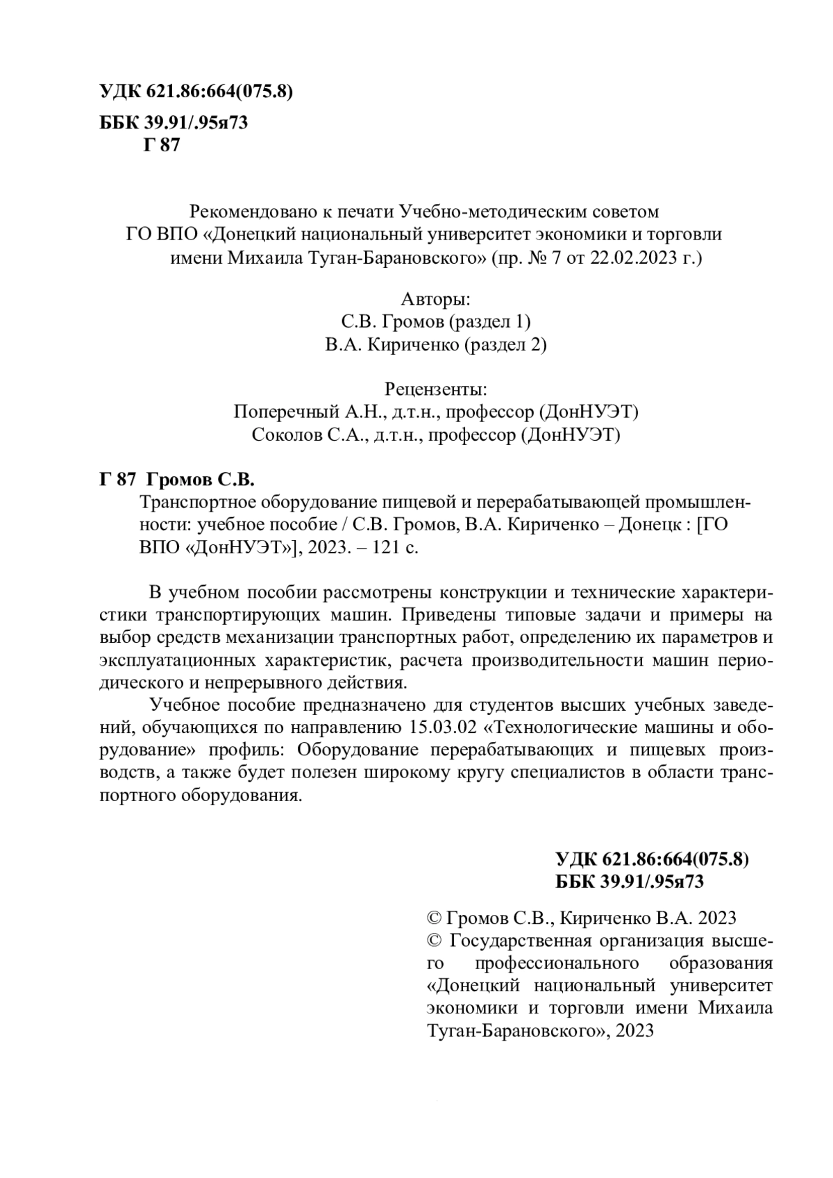 Учебное пособие предназначено для студентов высших учебных заведений, обучающихся по направлению 15.03.02 «Технологические машины и оборудование» профиль: Оборудование перерабатывающих и пищевых производств, а также будет полезен широкому кругу специалистов в области транспортного оборудования.