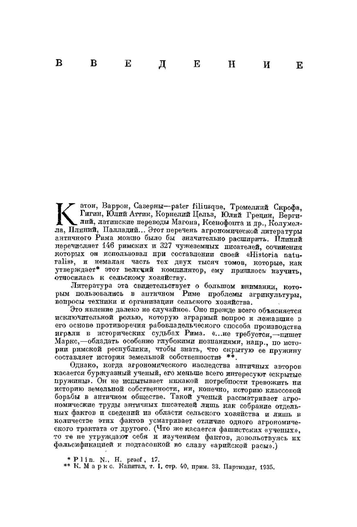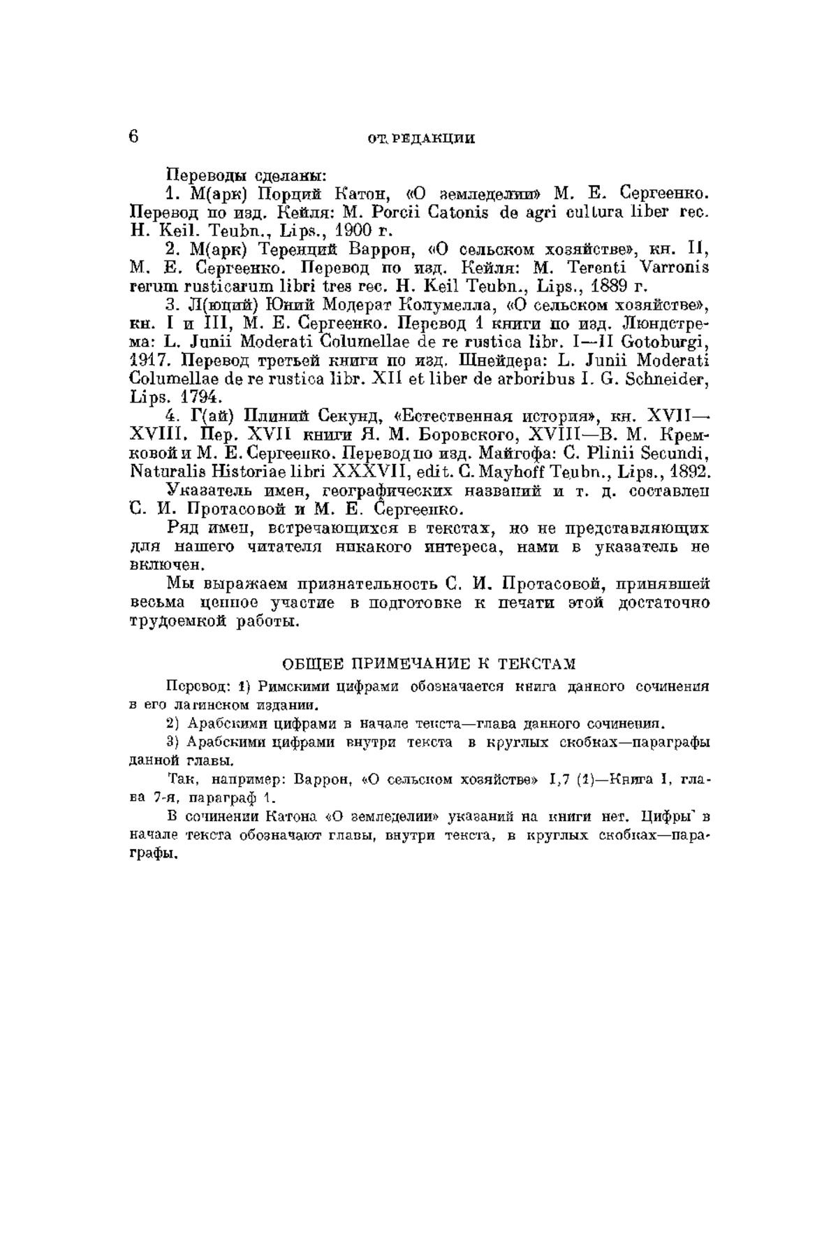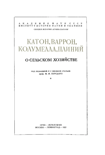 В настоящем издании, имеющем целью общее ознакомление читателя с характером и содержанием работ римских агрономических писателей, печатаются отдельные части, главы и книги из античных сочинений, посвященных сельскому хозяйству. При отборе материала для настоящего сборника составители стремились дать представление читателю об общем характере данного источника, поэтому вместо набора «избранных» отрывков они предпочитали печатать книги или главы целиком, не сокращая произвольно тех мест, которые могут показаться тому или другому читателю мало интересными. Весь сборник в целом составлялся таким образом, чтобы осветить возможно полнее воззрения античных агрономов по различным вопросам сельского хозяйства.