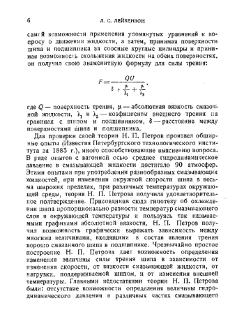 Значение гидродинамической теории смазки для народного хозяйства громадно, так как она дает возможность к рациональному проектированию подшипников, которые в современных быстроходных машинах играют столь важную роль. Поэтому понятно, что этому вопросу были посвящены работы самых выдающихся ученых и инженеров. Вопрос о поведении смазочных веществ в очень узком канале между поверхностями шипа и подшипника давно занимал инженеров, но, несмотря на усилия выдающихся исследователей, сущность происходящих здесь явлений оставалась невыясненной. Книга «Гидродинамическая теория смазки» приоткрывает завесу тайны над этим вопросам.