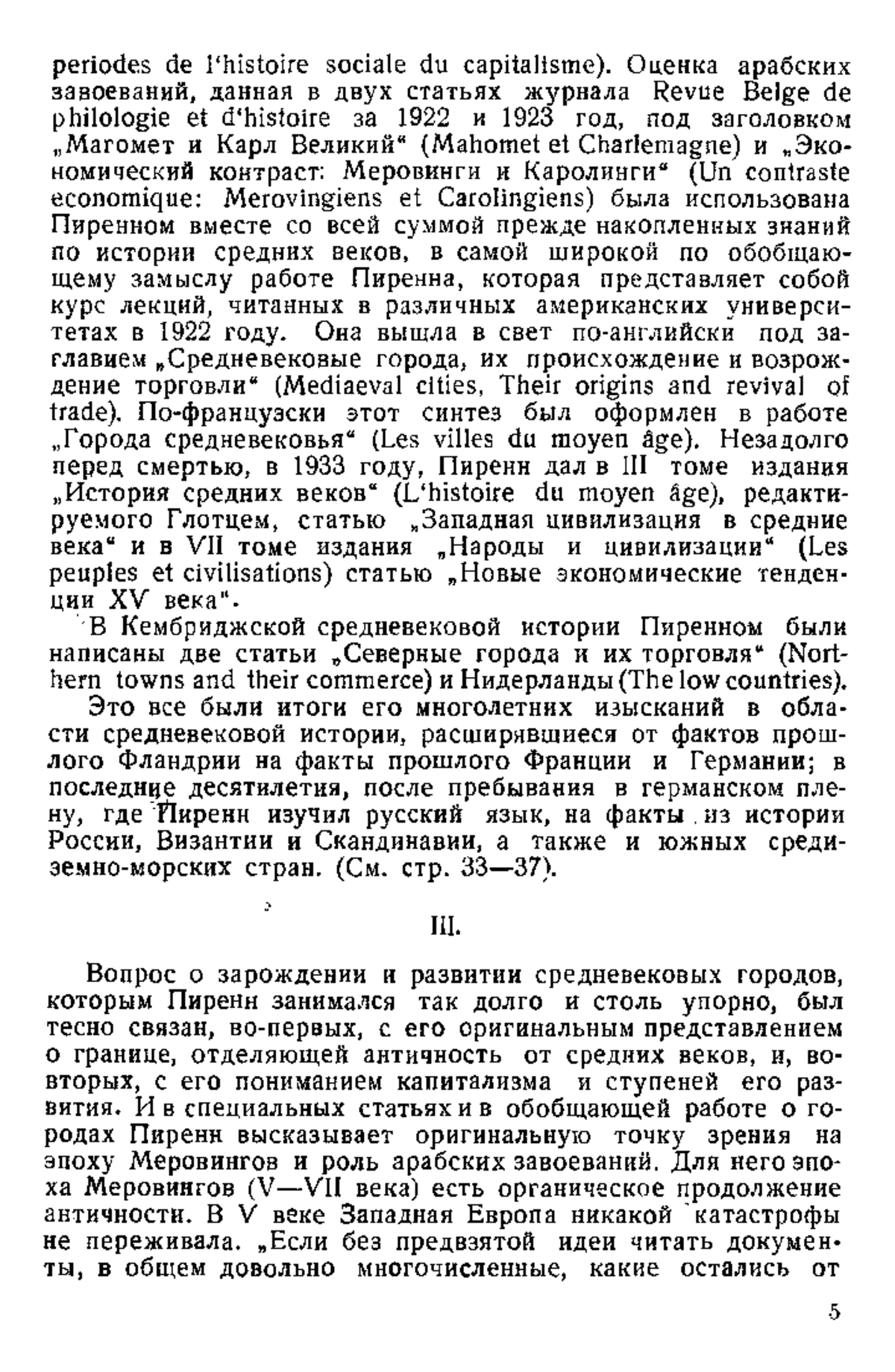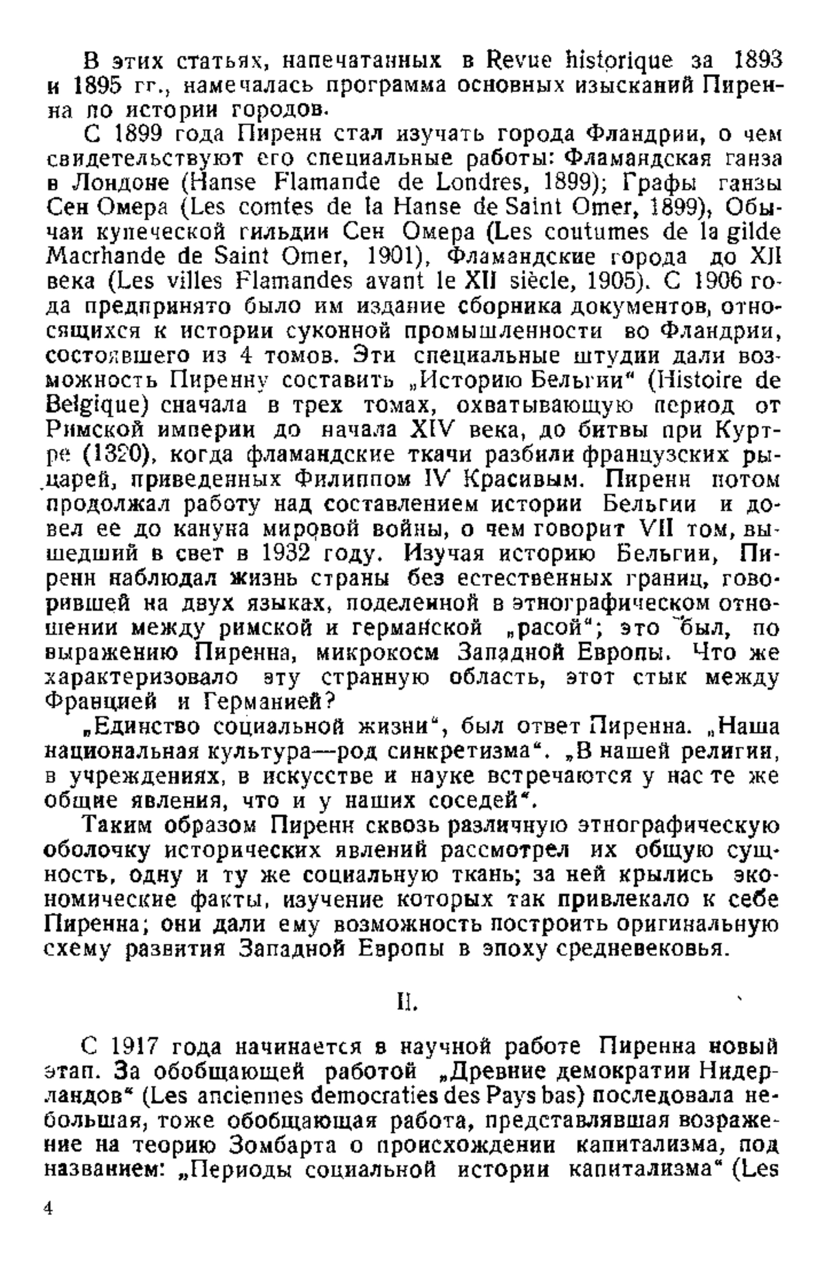 Экономические факты представляются Пиренну одинаковыми у различных народов; они облегчают понимание исторического процесса в его главном и существенном очертании. Историк-экономист всего более способен понять течение всеобщей истории.