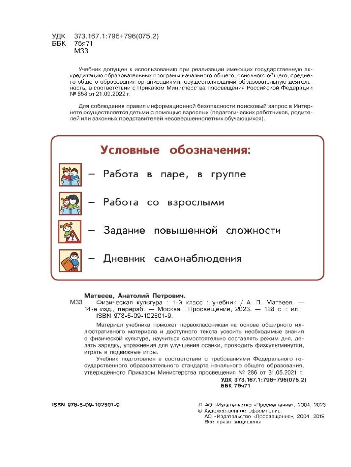 Материал учебника поможет первоклассникам на основе обширного иллюстративного материала и доступного текста усвоить необходимые знания о физической культуре, научиться самостоятельно составлять режим дня, делать зарядку, упражнения для улучшения осанки, проводить физкультминутки, играть в подвижные игры.