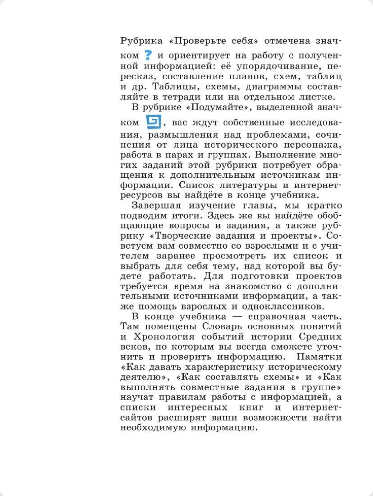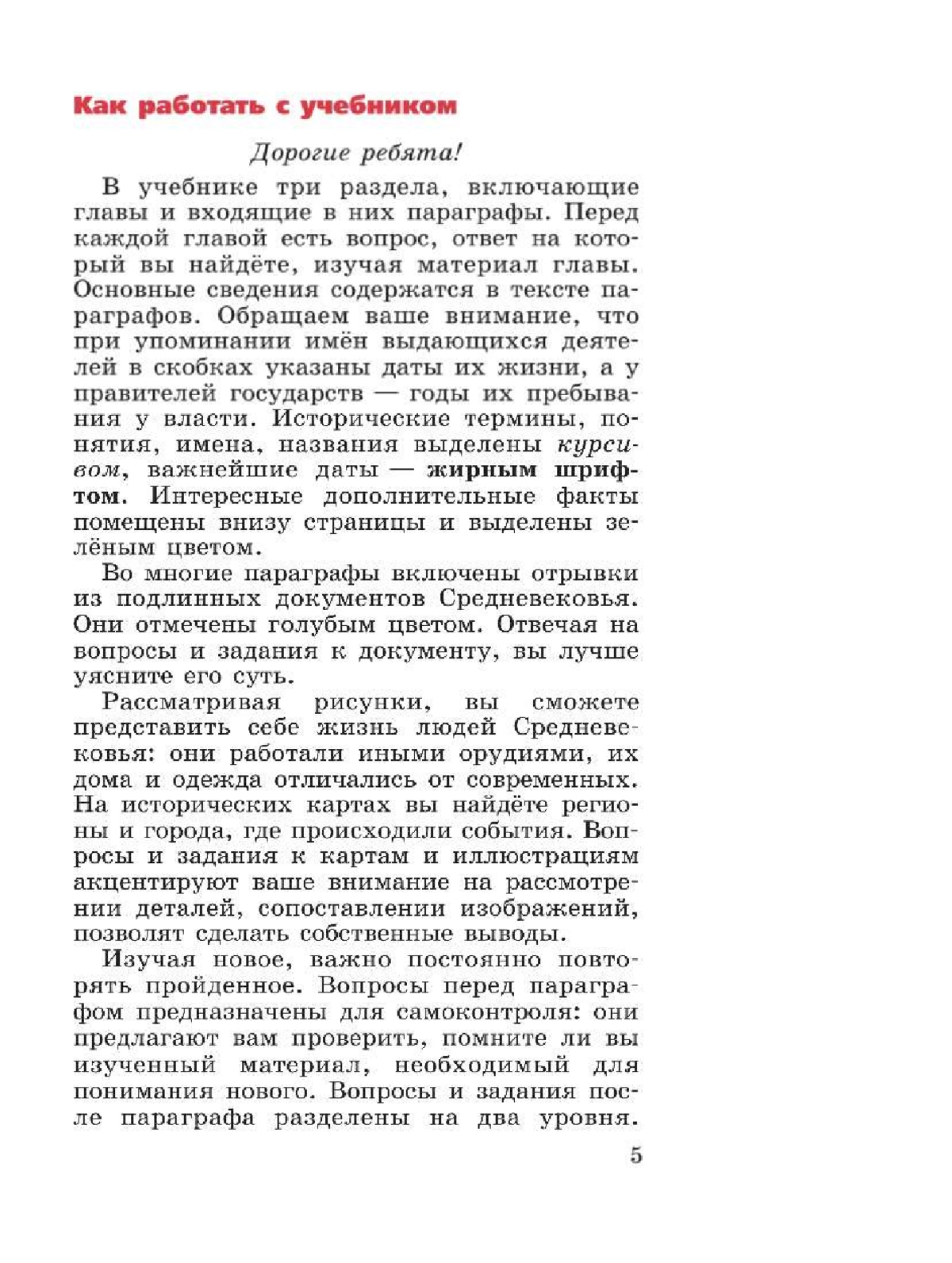 Данное издание учебника переработано в соответствии с Федеральным государственным образовательным стандартом основного общего образования. С учётом современных научных исследований описаны основные события средневековой истории; значительное внимание уделено культуре, быту и нравам средневекового общества. Результатом изучения курса является формирование системы знаний об истории человечества, понимание школьниками исторических ориентиров для самоидентификации в мире. Учебник соответствует требованиям Примерной программы по учебным предметам (История. 5—9 классы). Методический аппарат включает разноуровневые вопросы и задания, а также творческие и проектные работы к каждой главе.