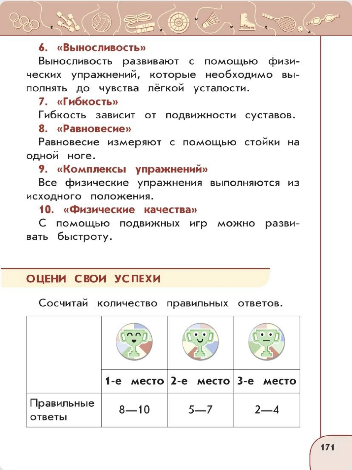 Учебник поможет второклассникам на основе обширного иллюстративного материала и доступного текста усвоить необходимые знания о физической культуре, научиться самостоятельно составлять режим дня, делать зарядку, выполнять упражнения для улучшения осанки, проводить физкультминутки, играть в подвижные игры.