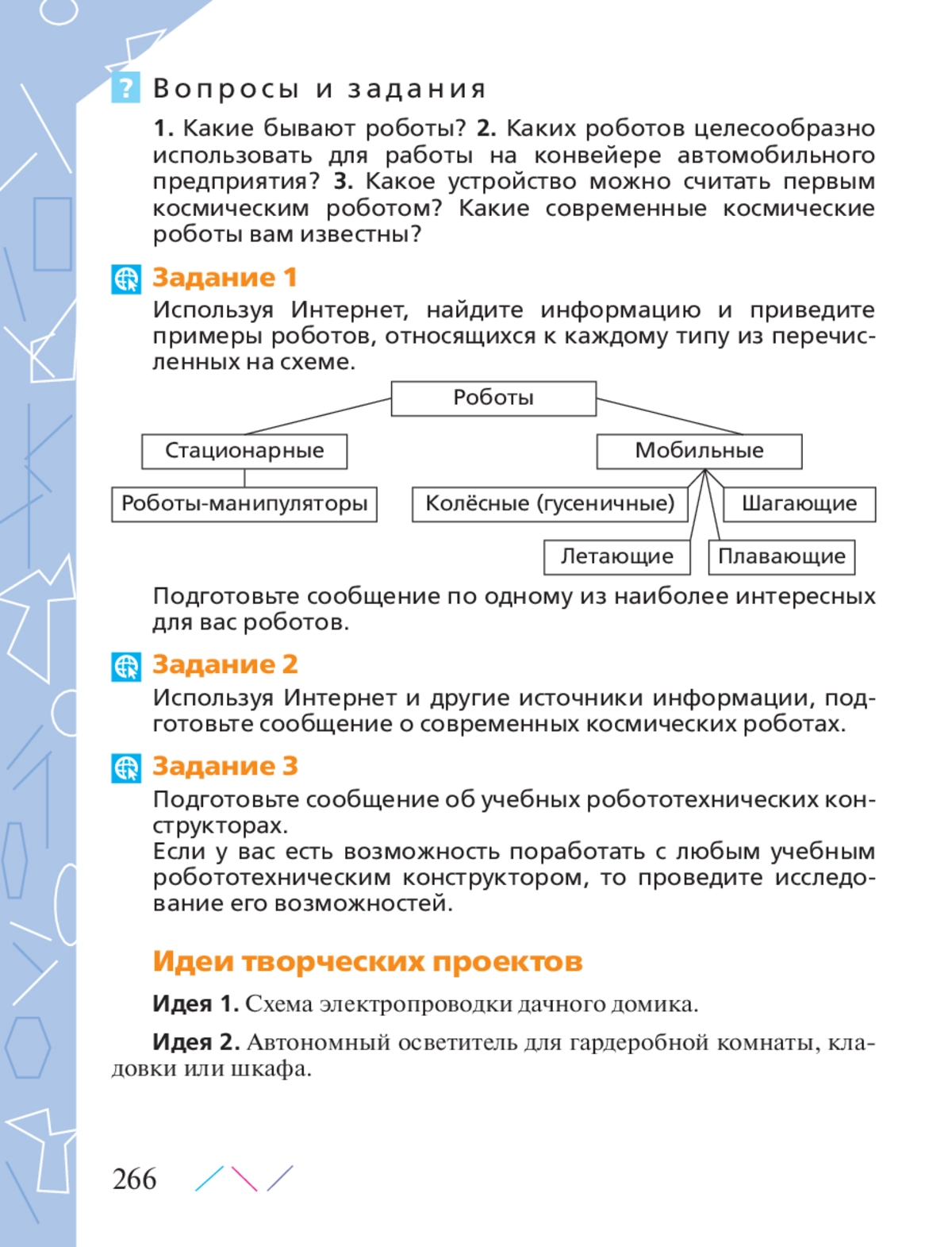 Учащиеся знакомятся с актуальными перспективными технологиями обработки материалов, сельскохозяйственными технологиями; технологиями обработки конструкционных, текстильных материалов, пищевых продуктов, художественно-прикладной обработки материалов. Получают сведения о технологии “умный дом”, основам электротехники и робототехники. Методический аппарат учебника составляют вопросы для самопроверки, система заданий, включающих исследовательские, графические, практические задания, темы проектов, задания с использованием Интернета. Учебник содержит рубрику “Полезная информация”, в которую помещён дополнительный материал, словари профессий и основных понятий и терминов. Учебник соответствует Федеральному государственному образовательному стандарту основного общего образования.