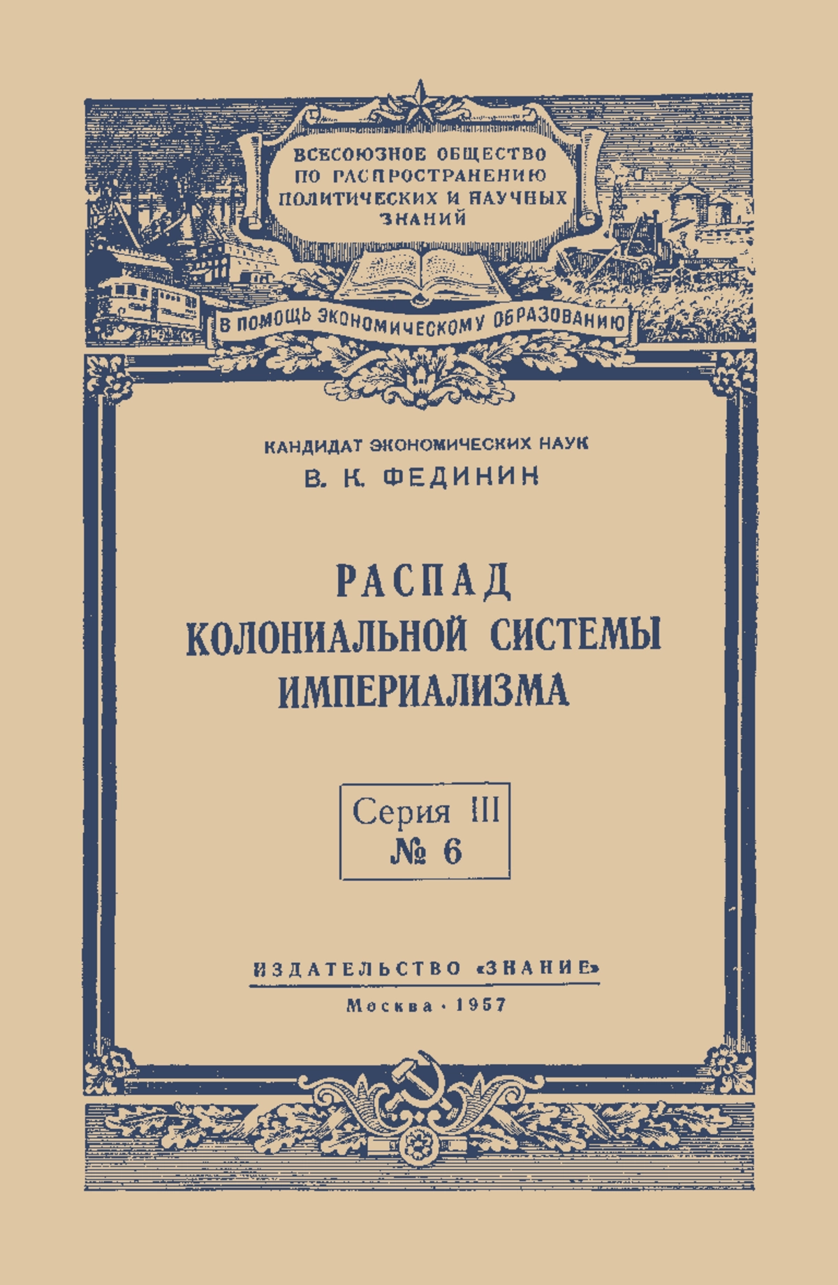 Брошюра посвящена актуальному вопросу - распаду колониальной системы империализма. В ней раскрыты объективные закономерности исторического развития, приведшие к распаду колониальной системы, рассмотрены социально-экономические процессы, происходящие в настоящее время как в колониальных и зависимых странах, так и в странах, освободившихся от колониальной зависимости и вступивших на путь самостоятельного политического и экономического развития, показано всемирно-историческое значение прогрессирующего распада системы колониализма.