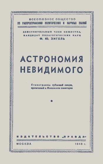 «Астрономия невидимого» представляет собой мощную и чрезвычайно плодотворную отрасль современной астрономии. Она имеет не только огромное теоретическое и практическое, но и философско-познавательное значение, ярко иллюстрируя учение диалектического материализма о бесконечном многообразии окружающего нас материального мира, о его принципиальной познаваемости, о безграничном развитии и углублении научного познания объективной истины. Успехи «астрономии невидимого» в прошлом и настоящем окончательно опровергают агностицизм защитников религии и идеализма, вселяя уверенность в силе нашей советской науки, успешно идущей по пути создания и внедрения новых методов изучения вселенной…»