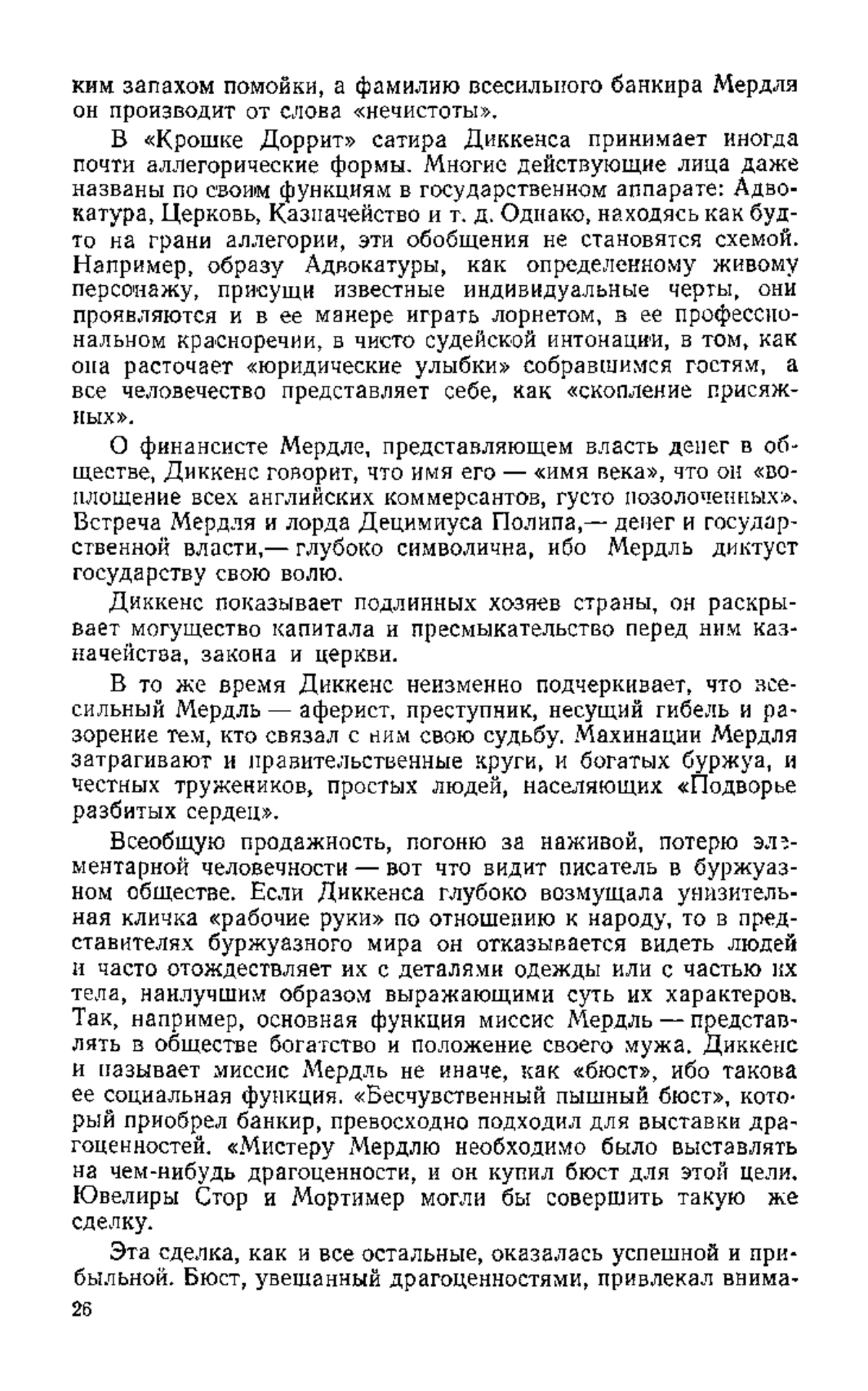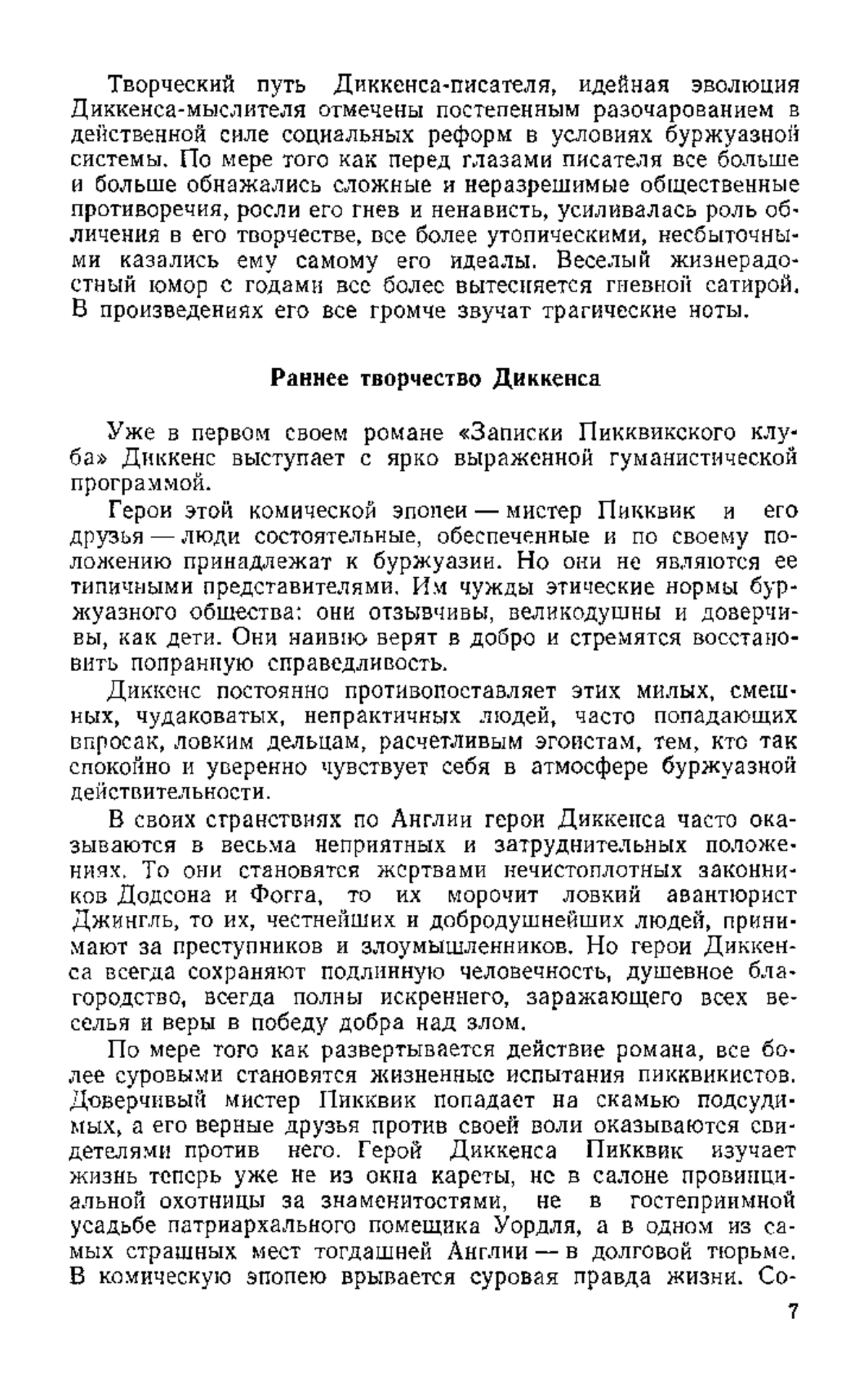 «Литературная деятельность Диккенса протекает в эпоху величайших общественных потрясений в Англии, эпоху роста и развития рабочего движения. В Англии — старейшей капиталистической державе мира — к 30-м годам XIX века прочно утвердилась фабричная система производства. Однако оборотной стороной технического прогресса в стране явилось все большее обнищание народа. Голод, нужда, безработица становятся постоянными спутниками жизни трудящихся…»