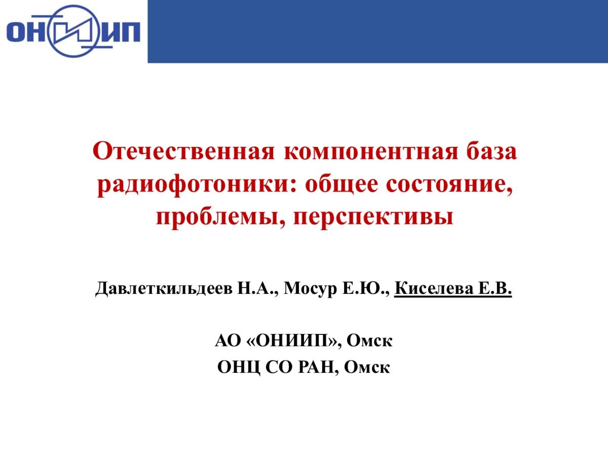 Презентация: Отечественная компонентная база радиофотоники: общее состояние, проблемы, перспективы