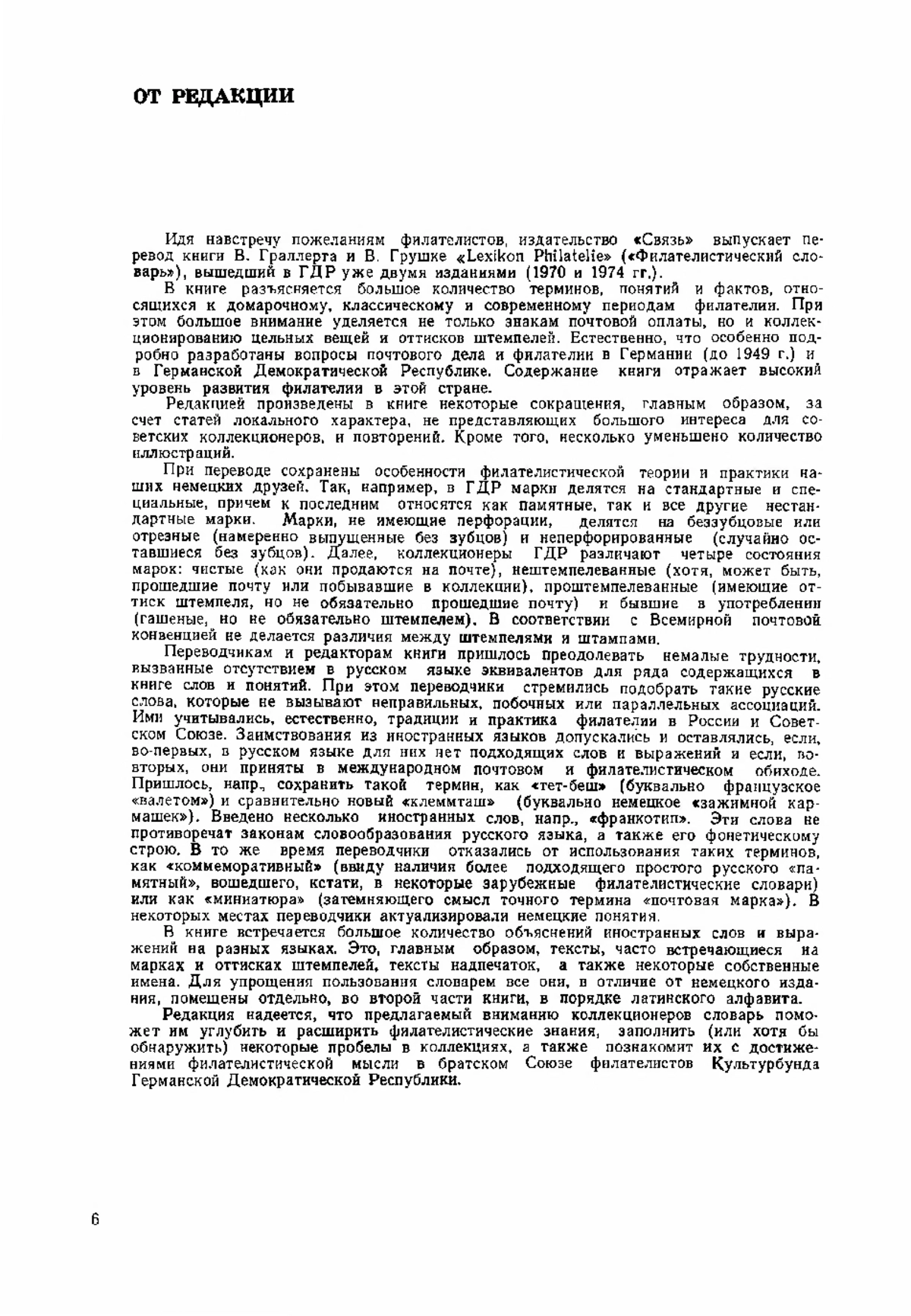 В «Филателистическом словаре» приводится краткое объяснение понятий, терминов и специальных обозначений, связанных с классической, мотивной и документальной филателией, а также с аэрофилателией. Рассказывается о почтовых марках, цельных вещах. штемпелях и разных видах почты. Перевод сделан со второго немецкого издания. Словарь рассчитан на коллекционеров, а так же широкий круг читателей, интересующихся филателией.