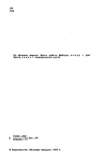 Кант. М., «Молодая гвардия», 1977. 304 с. ил. (Жизнь замечат. людей. Серия биографий. Вып. 7 (570).