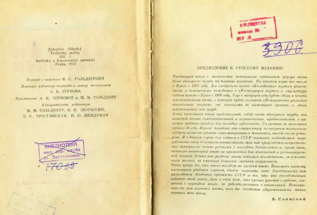 Настоящая книга о живописных материалах составляет первую часть более обширного труда по технике живописи. На чешском языке она вышла в Праге в 1953 году. Две следующие части «Исследование картин физическими и химическими методами» и «Реставрация картин и скульптур» изданы также в Праге в 1956 году. Хотя книга представляет собой часть обширного труда, она является вполне самостоятельной и первоначально предназначалась в качестве учебного пособия для молодых художников.