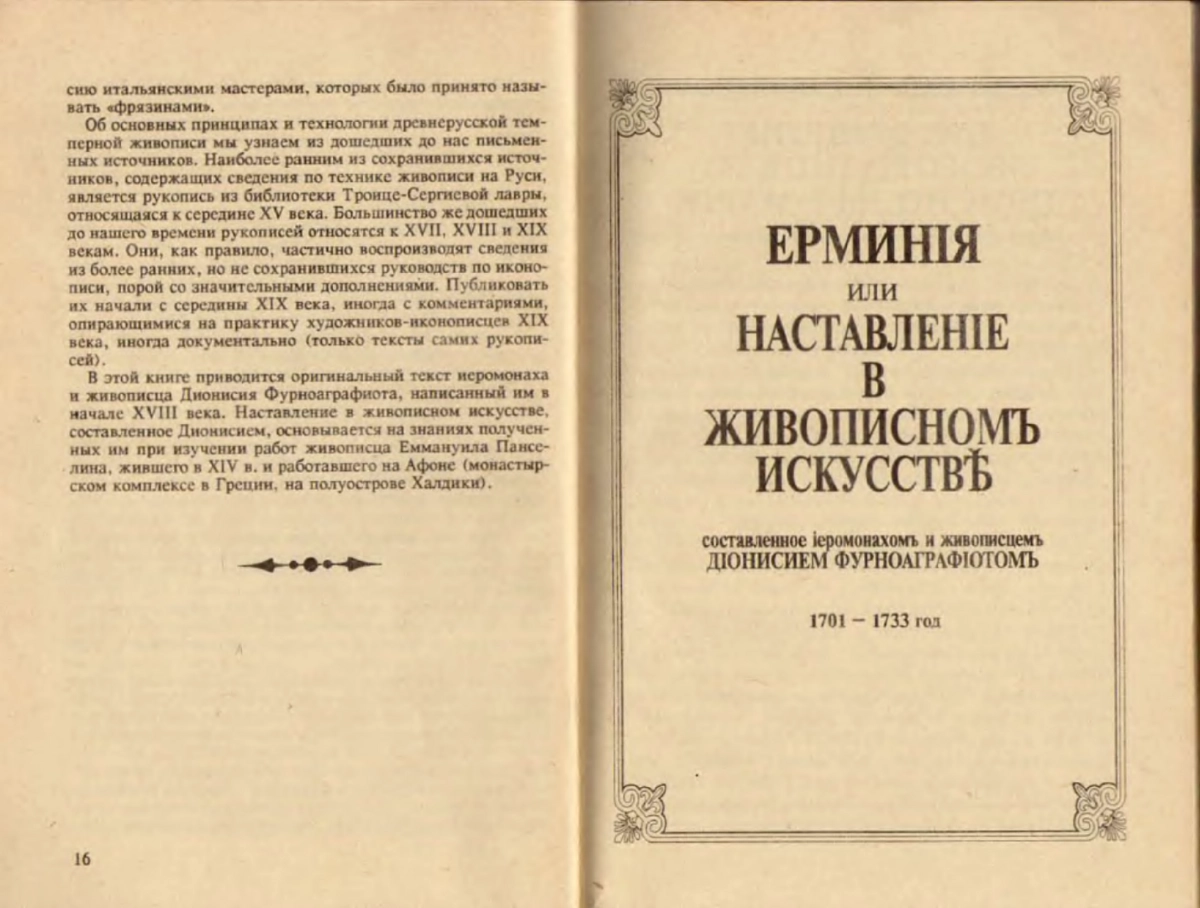 В книге “Икона” делается попытка собрать воедино разрозненную информацию, необходимую художнику, реставратору, искусствоведу, работникам музеев, организациям, занимающимся охраной памятников культуры, студентам художественных учебных заведений, коллекционерам и просто любителям и знатокам иконы. Данная книга не рассматривает религиозные и искусствоведческие аспекты иконы, составители также не претендуют на авторство приводимых в книге рецептов и технологий живописи. Основное внимание в книге уделяется древним иконописным традициям, представленным оригинальным текстом «Наставление в живописном искусстве» Дионисия Фурноаграфиота, который дается в контексте с современными технологиями.