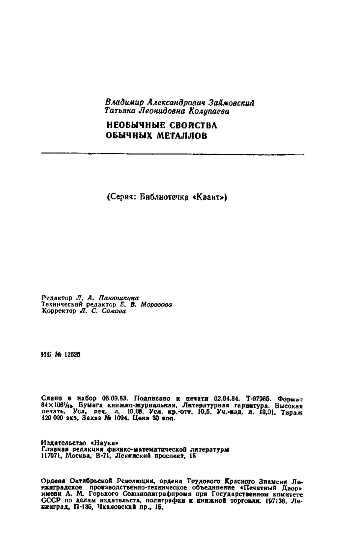 Необычные свойства обычных металлов /Под ред. Л. Г. Асламазова.—М.: Наука. Главная редакция физико-математической литературы, 1984.—192 с.—(Библиотечка «Квант». Вып. 32).—30 к.