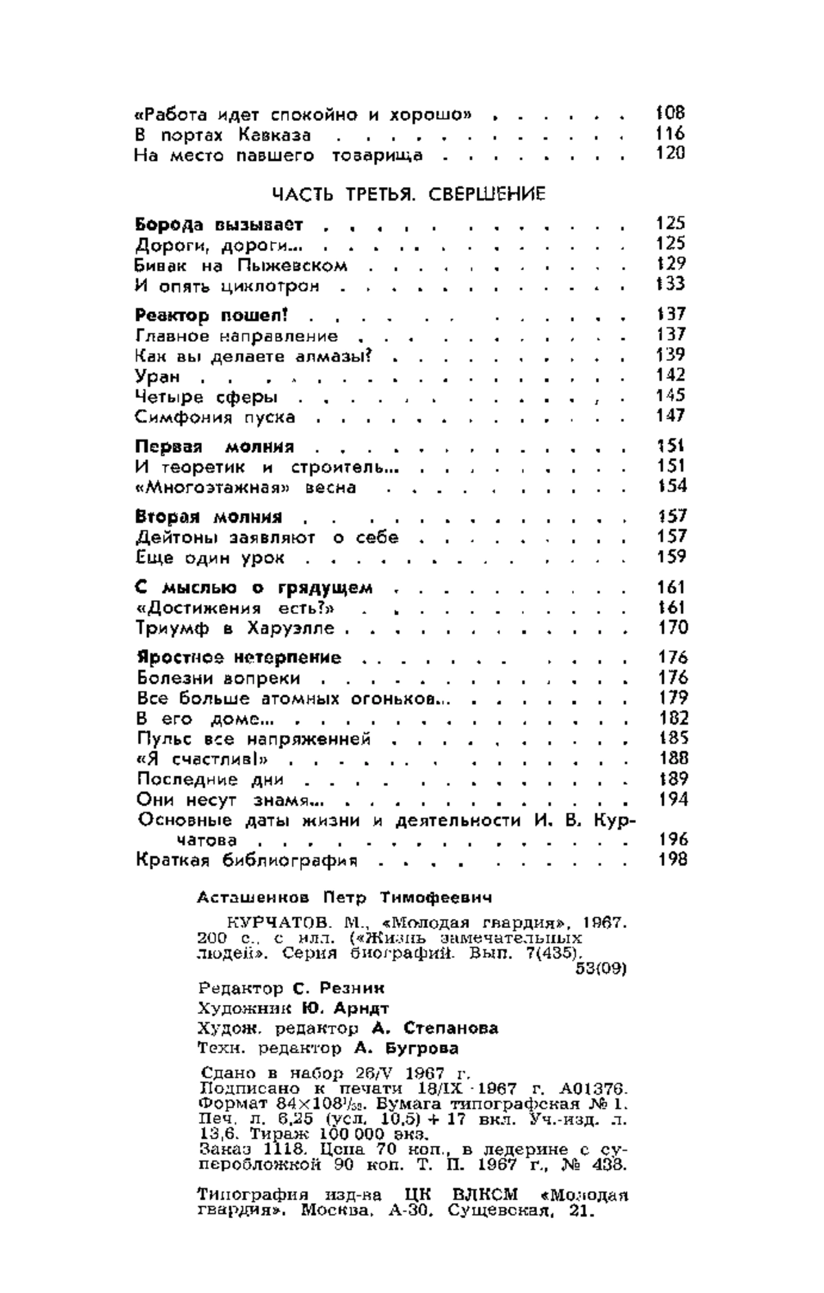 КУРЧАТОВ. М., «Молодая гвардия», 1967. 200 с, с илл. («Жизнь замечательных людей». Серия биографий. Вып. 7(435).