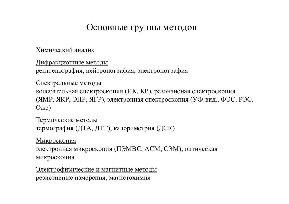 Характеризация соединений – неотъемлемая часть всех исследований в неорганической химии. Различают (условно) методы исследования: