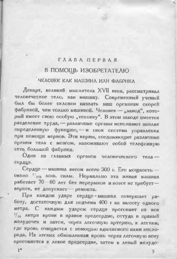 Декарт, великий мыслитель XVII века, рассматривал человеческое тело, как машину. Современный ученый был бы более склонен назвать наш организм скорей фабрикой, чем только машиной. Человек — «завод», который имеет свою особую «технику». В этом заводе имеется разделение труда, — различные органы исполняют вполне определенную функцию, — и своя система управления при помощи нервов.