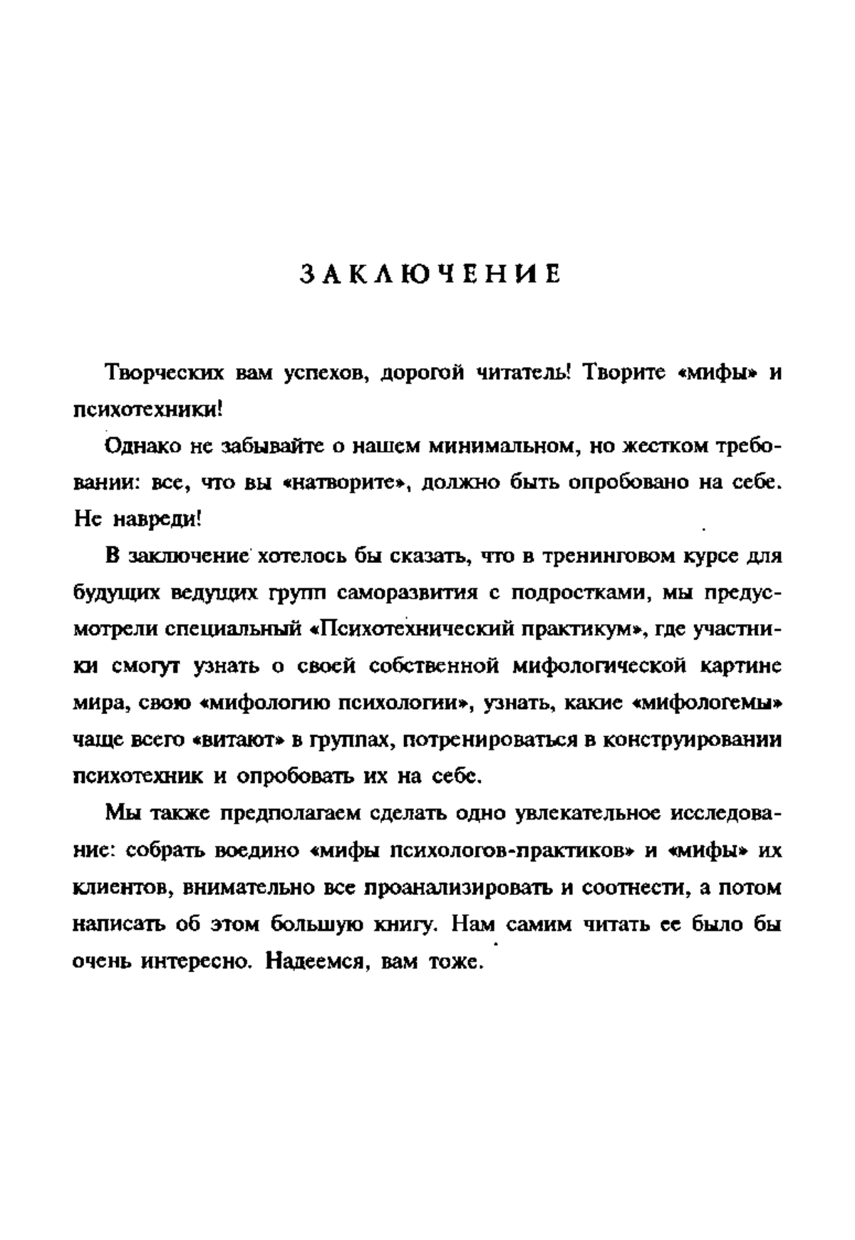 В ней дается анализ групповой динамики и рекомендации по созданию психологических техник и приемов, помогающих подросткам познать себя и выработать умение управлять своей внутренней жизнью.