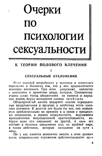 В детстве его будто бы нет, оно появляется приблизительно ко времени и в связи с процессами созревания, в период возмужалости, выражается проявлениями непреодолимой притягательности, которую один пол оказывает на другой, и цель его состоит в половом соединении или, по крайней мере, в таких действиях, которые находятся на пути к нему.