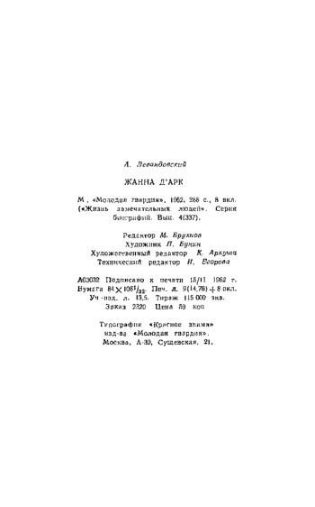 ЖАННА Д’АРК М.: - «Молодая гвардия», 1962, 288 с., 8 вкл. («Жизнь замечательных людей». Серия