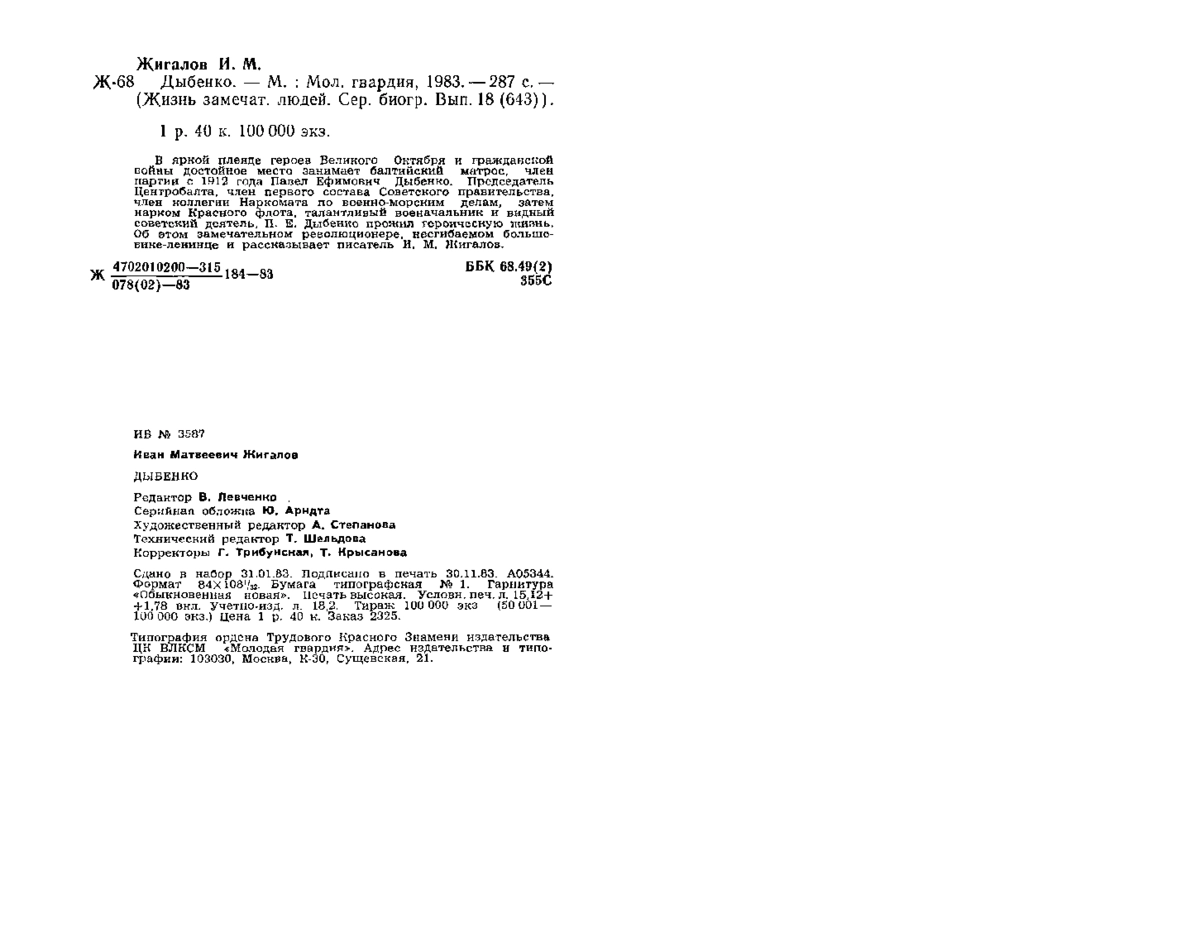 Дыбенко. - М.: Мол. гвардия, 1983. — 287 с. (Жизнь замечат. людей. Сер. биогр. Вып. 18 (643)).