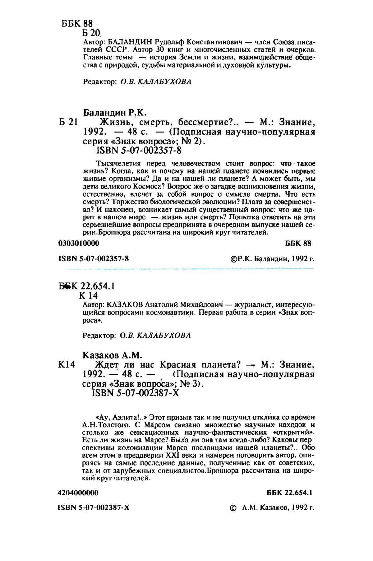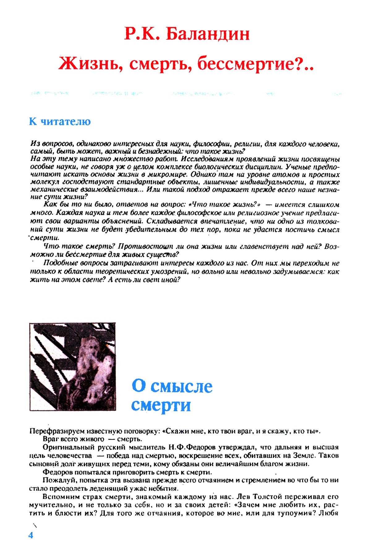 Жизнь, смерть, бессмертие?.. — М.: Знание, 1992. — 48 с. — (Подписная научно-популярная серия «Знак вопроса»; № 2).
