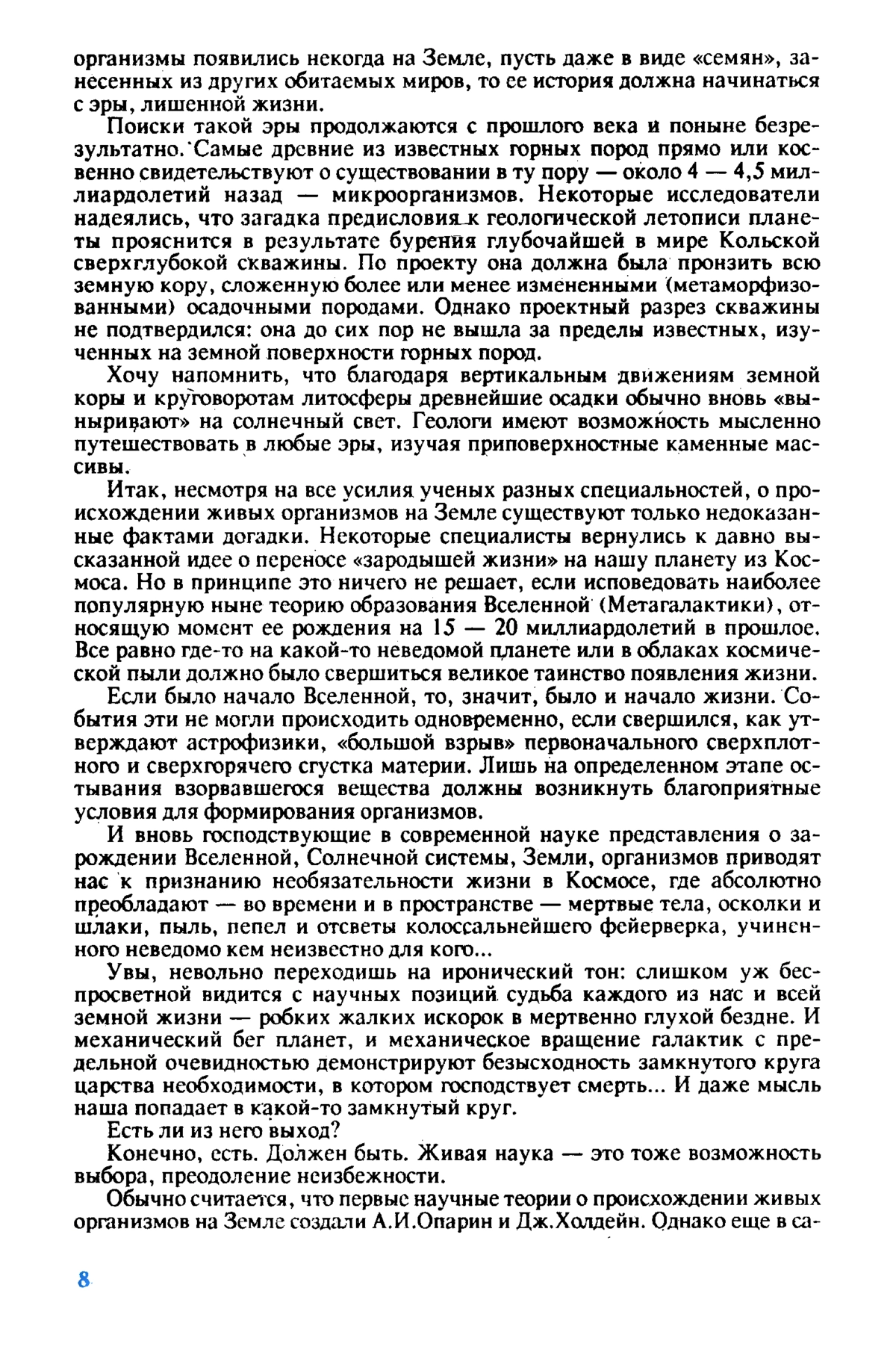 Тысячелетия перед человечеством стоит вопрос: что такое жизнь? Когда, как и почему на нашей планете появились первые живые организмы? Да и на нашей ли планете? А может быть, мы дети великого Космоса? Вопрос же о загадке возникновения жизни, естественно, влечет за собой вопрос о смысле смерти. Что есть смерть? Торжество биологической эволюции? Плата за совершенство? И наконец, возникает самый существенный вопрос: что же царит в нашем мире — жизнь или смерть?