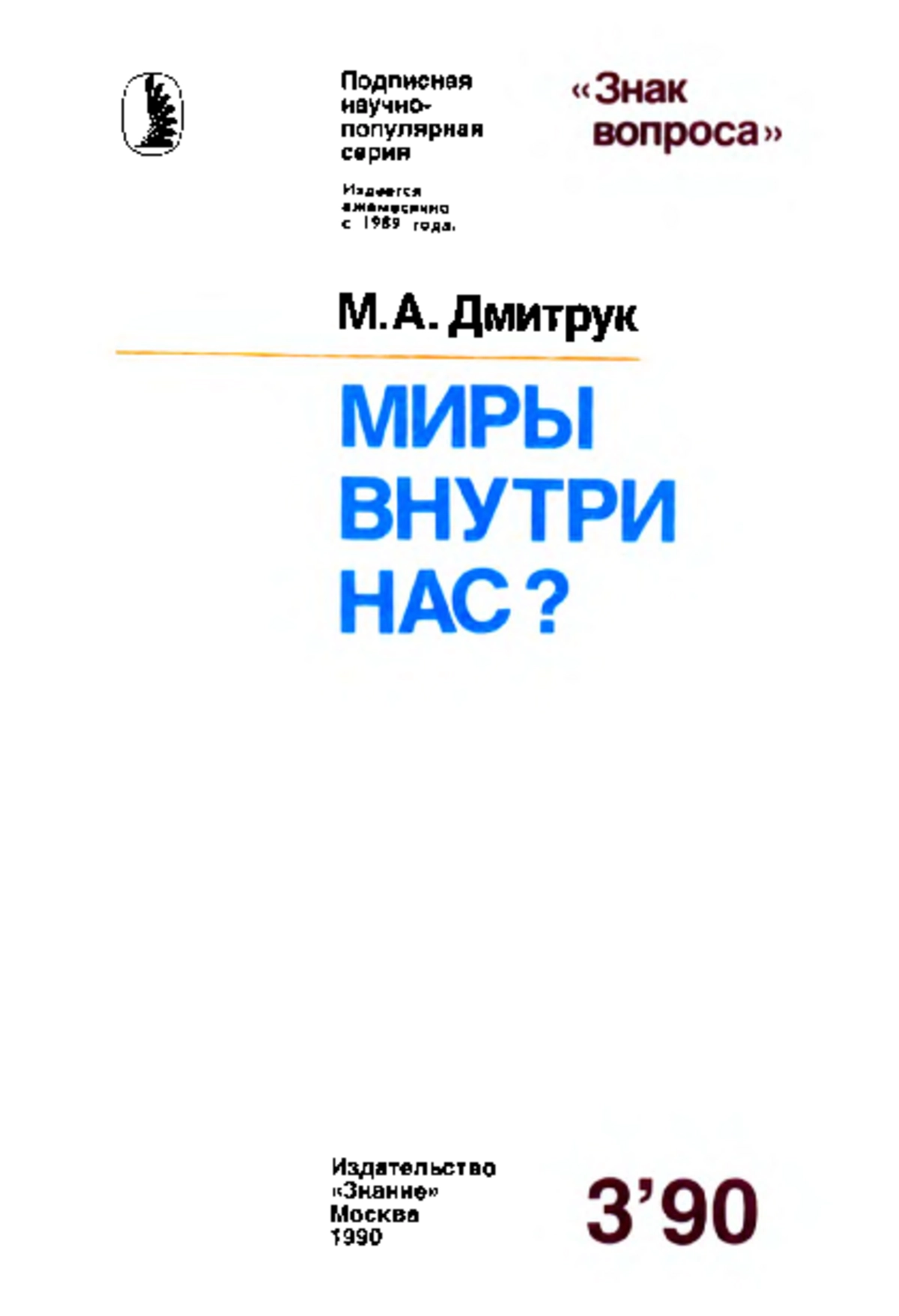 Дмитрук М. А. Миры внутри нас? — М.: Знание, 1990.— 48 с.— (Подписная научно-популярная серия «Знак вопроса»; № 3).