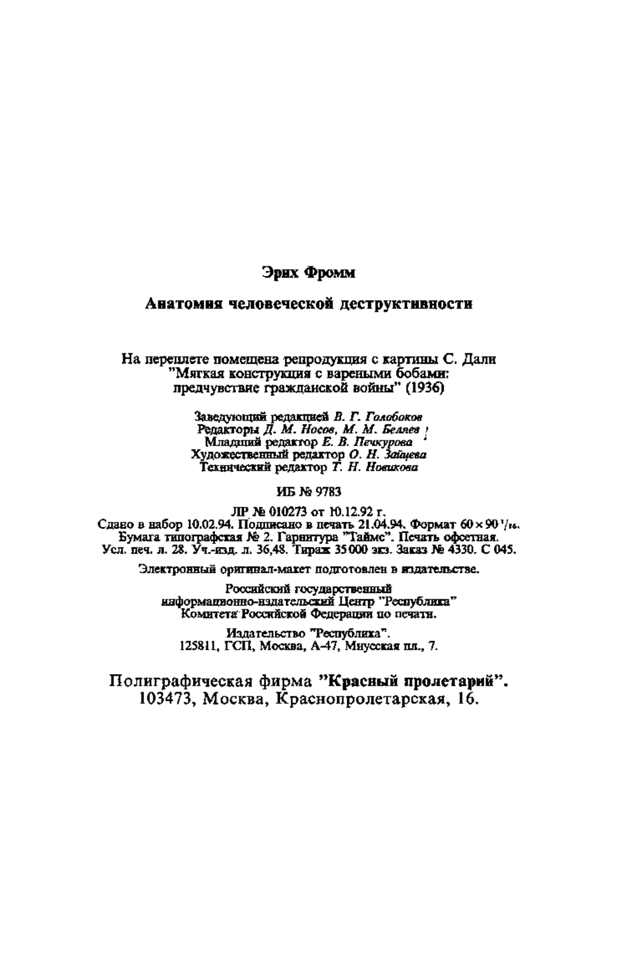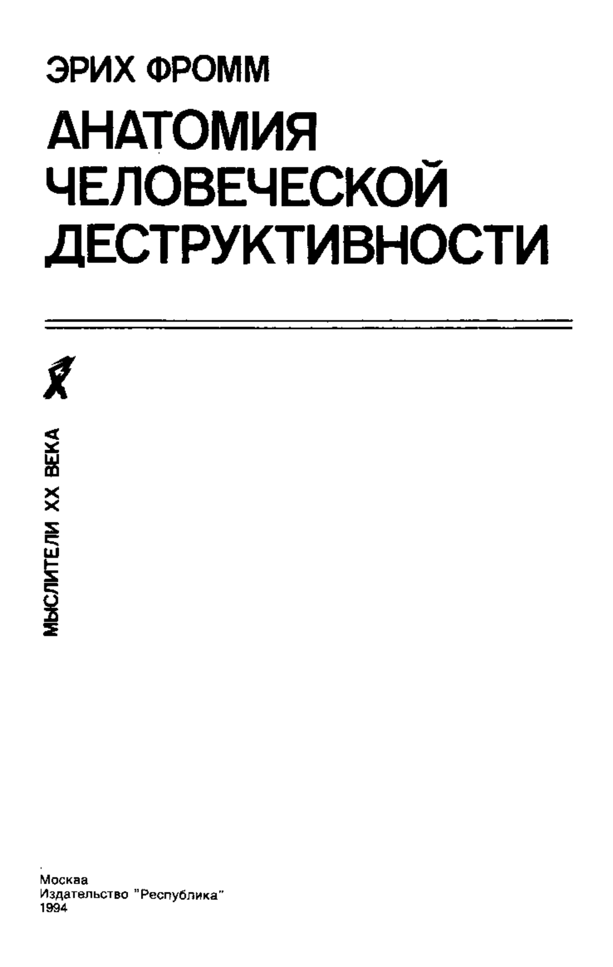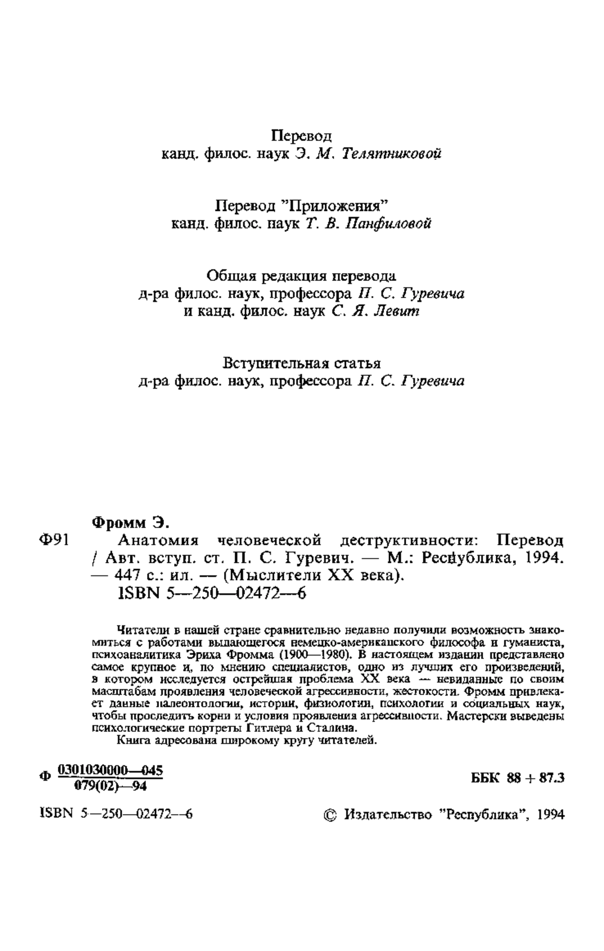 Фроми Э. Анатомия человеческой деструктивности: Перевод / Авт. вступ. ст. П. С. Гуревич. — М.: Республика, 1994. — 447 с.: ил. — (Мыслители XX века).