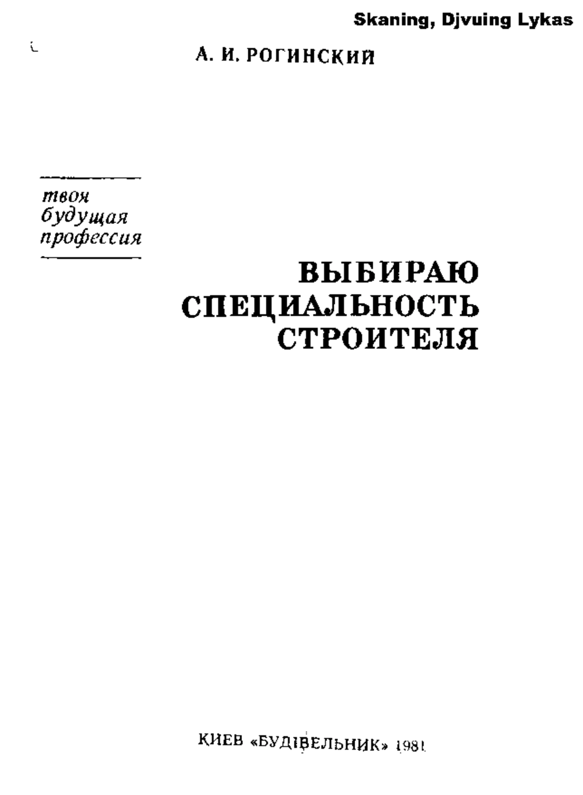 Выбираю специальность строителя. - К.: Будiвельник, 1981. - 48 с., ил. - (Твоя будущая профессия).