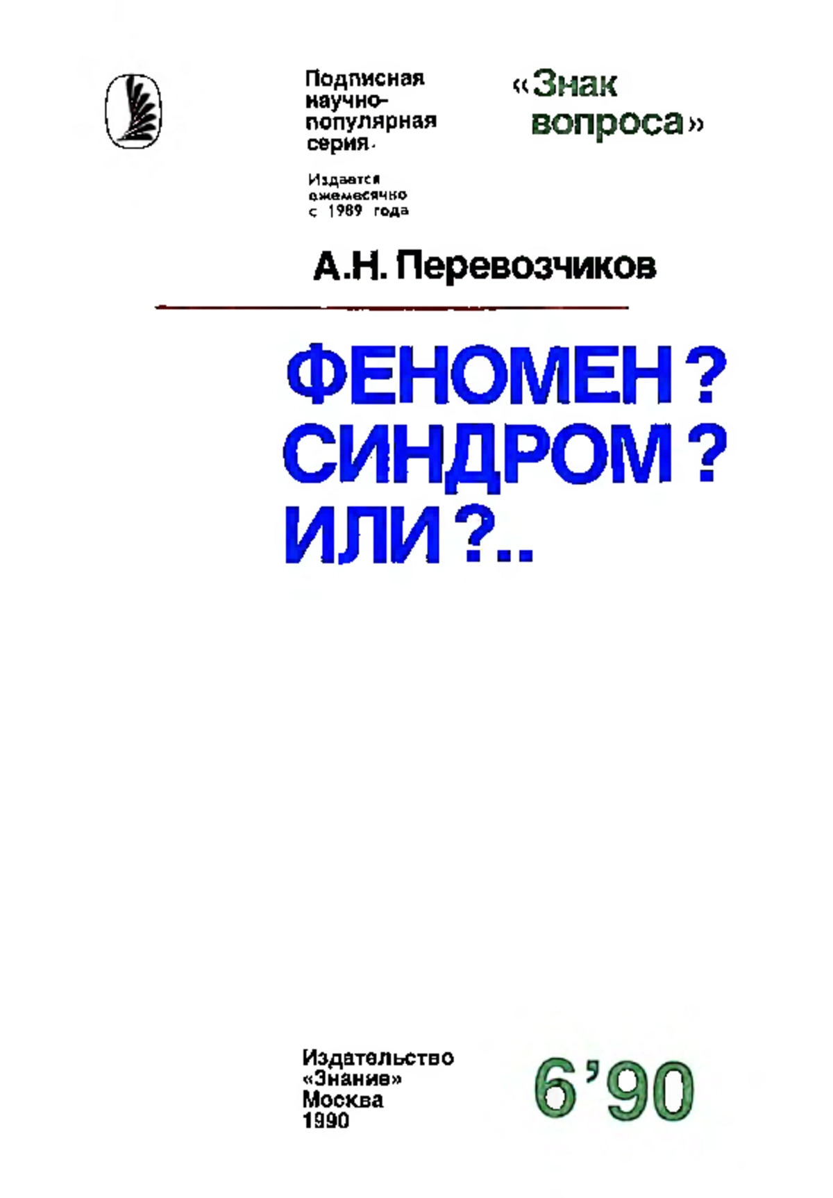 Перевозчиков А. Н. Феномен? Синдром? Или?.. — М.: Знание, 1990.—48 с.— (Новое в жизни, науке, технике. Сер. «Знак вопроса»; № 6).