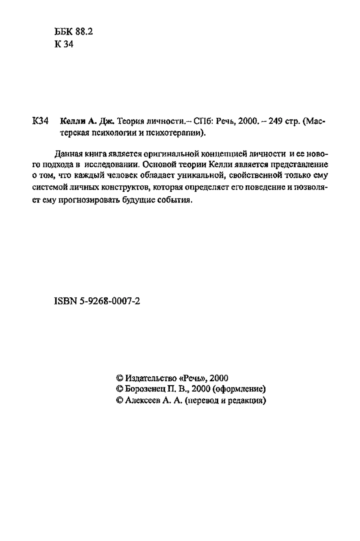 Келли А. Дж. Теория личности.— СПб: Речь, 2000. — 249 стр. (Мастерская психологии и психотерапии).