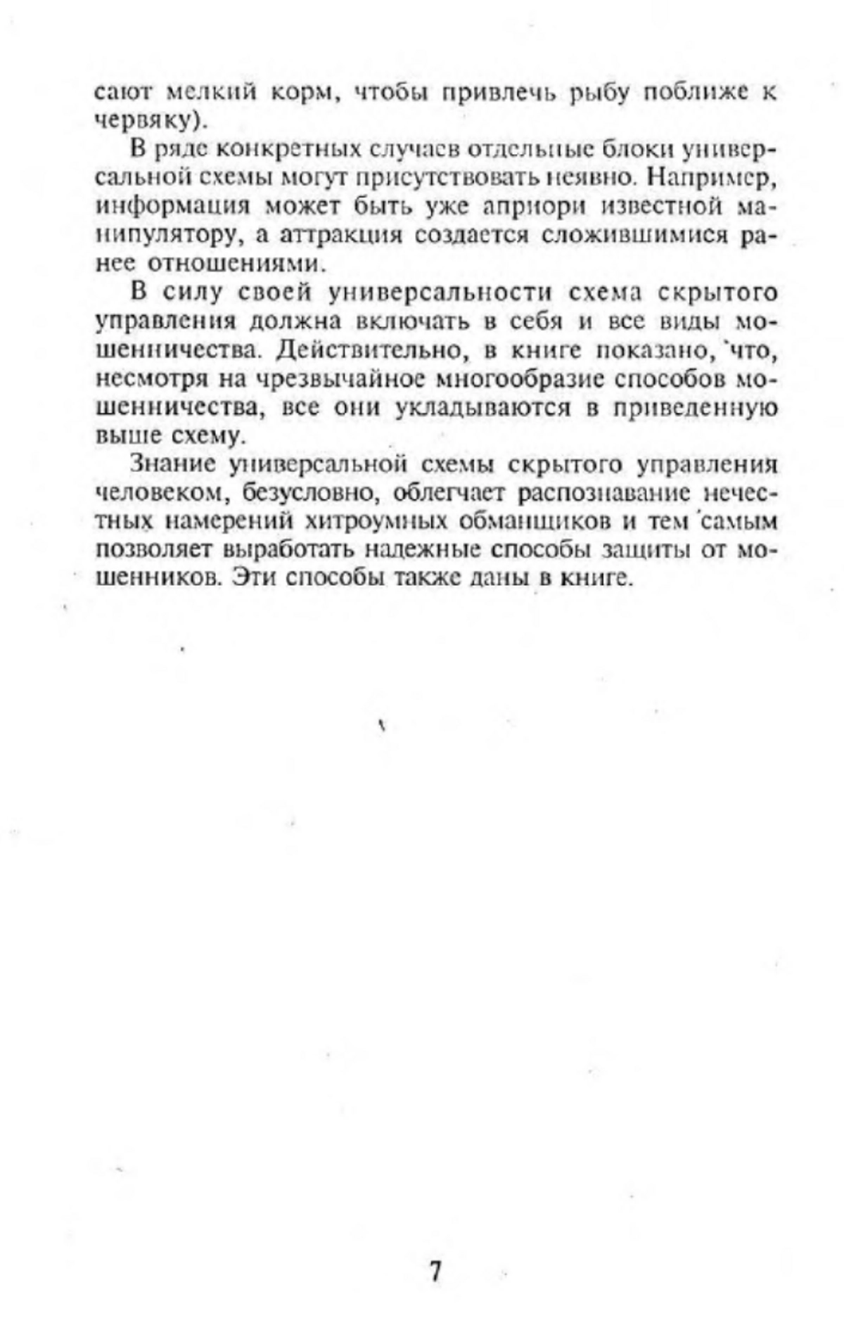 Все рекомендации автора основываются на разработанной им схеме управления человеком; им же предложена универсальная схема защиты от обмана и мошенничества.