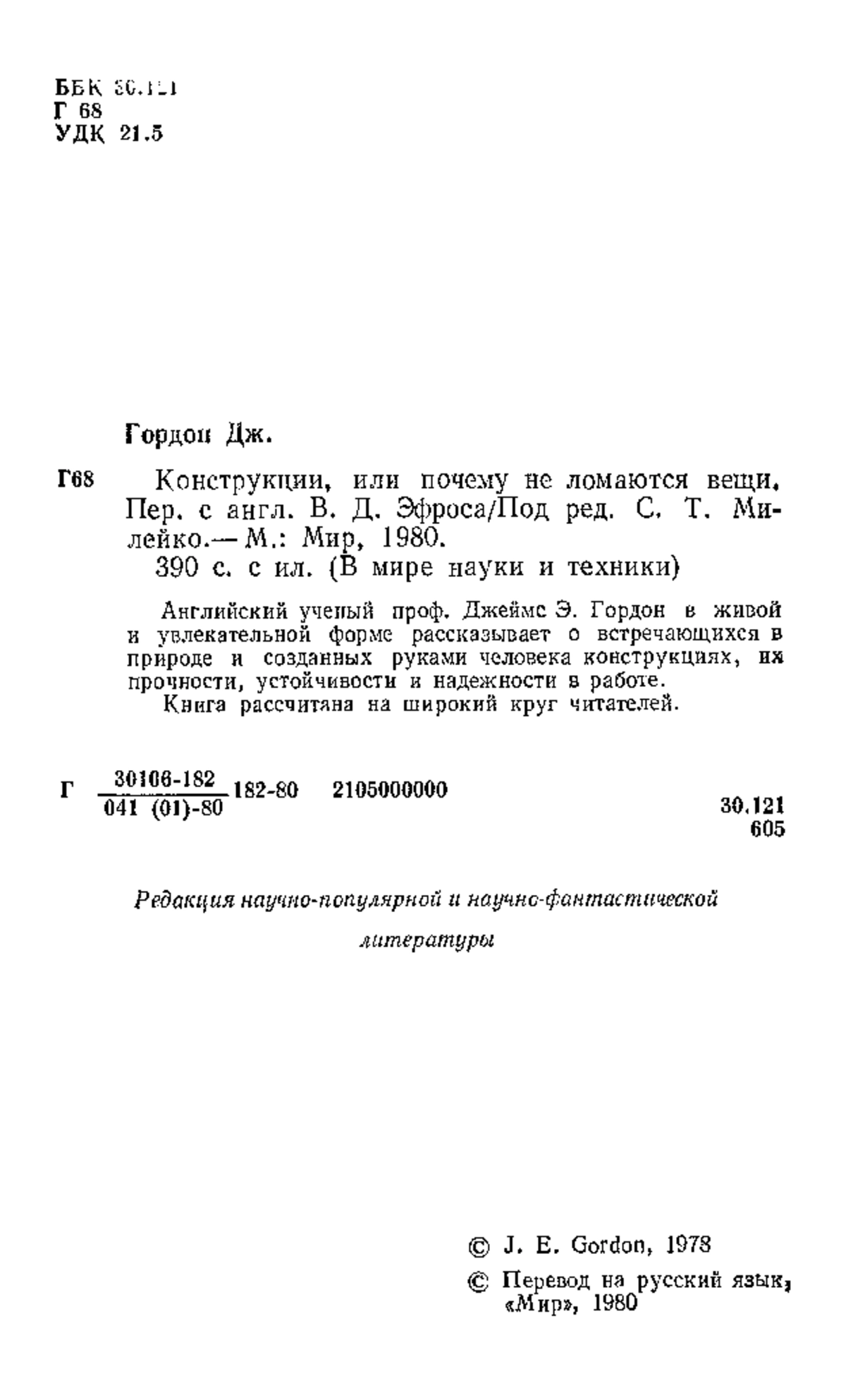 Конструкции, или почему не ломаются вещи, Пер. с англ. В. Д. ЭфросаЛТод ред. С. Т. Милейко.— М.: Мир, 1980. 390 с. с ил. (В мире науки и техники)