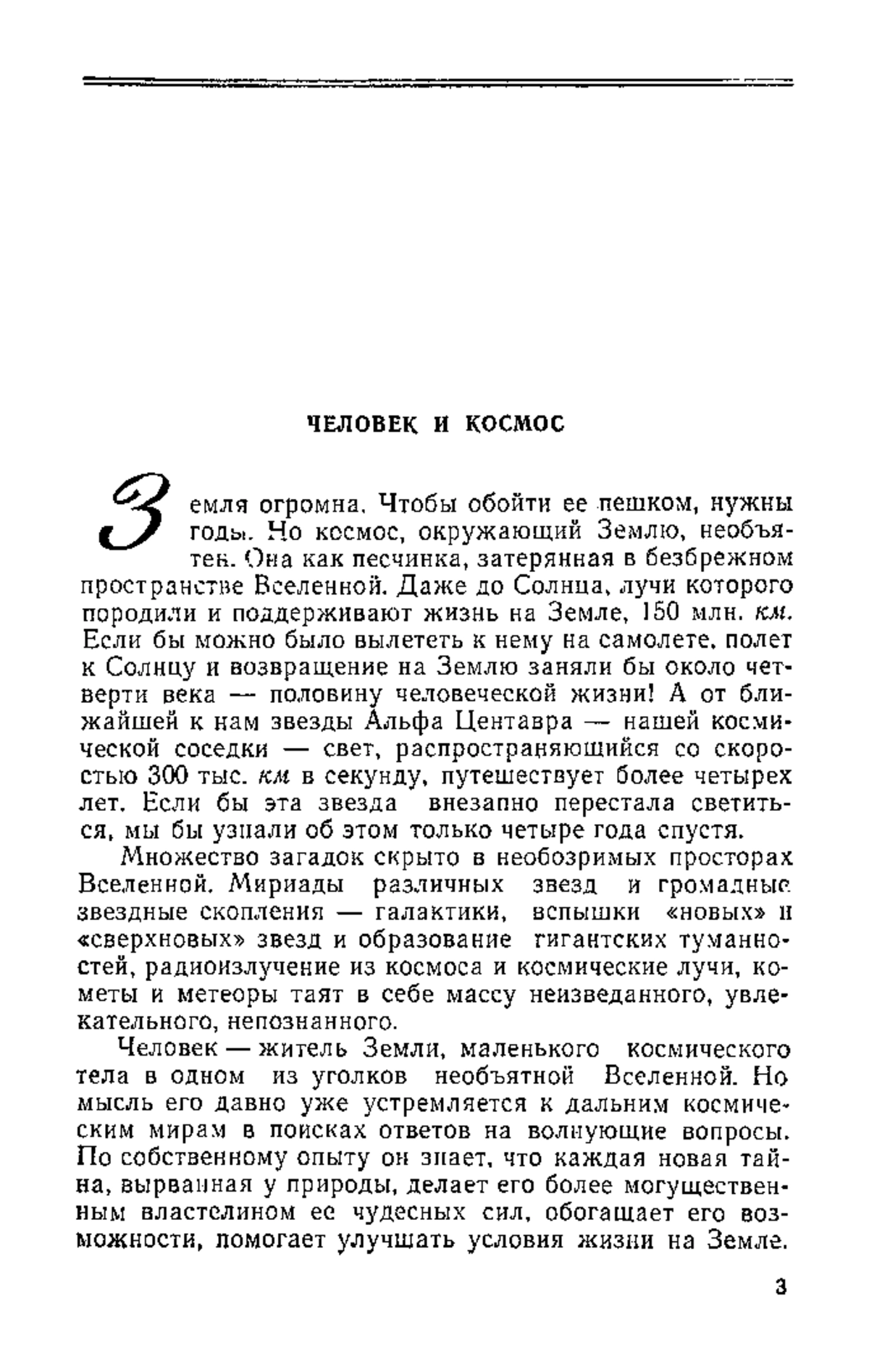 «… Множество загадок скрыто в необозримых просторах Вселенной. Мириады различных звезд и громадные звездные скопления — галактики, вспышки «новых» и «сверхновых» звезд и образование гигантских туманностей, радиоизлучение из космоса и космические лучи, кометы и метеоры таят в себе массу неизведанного, увлекательного, непознанного…»