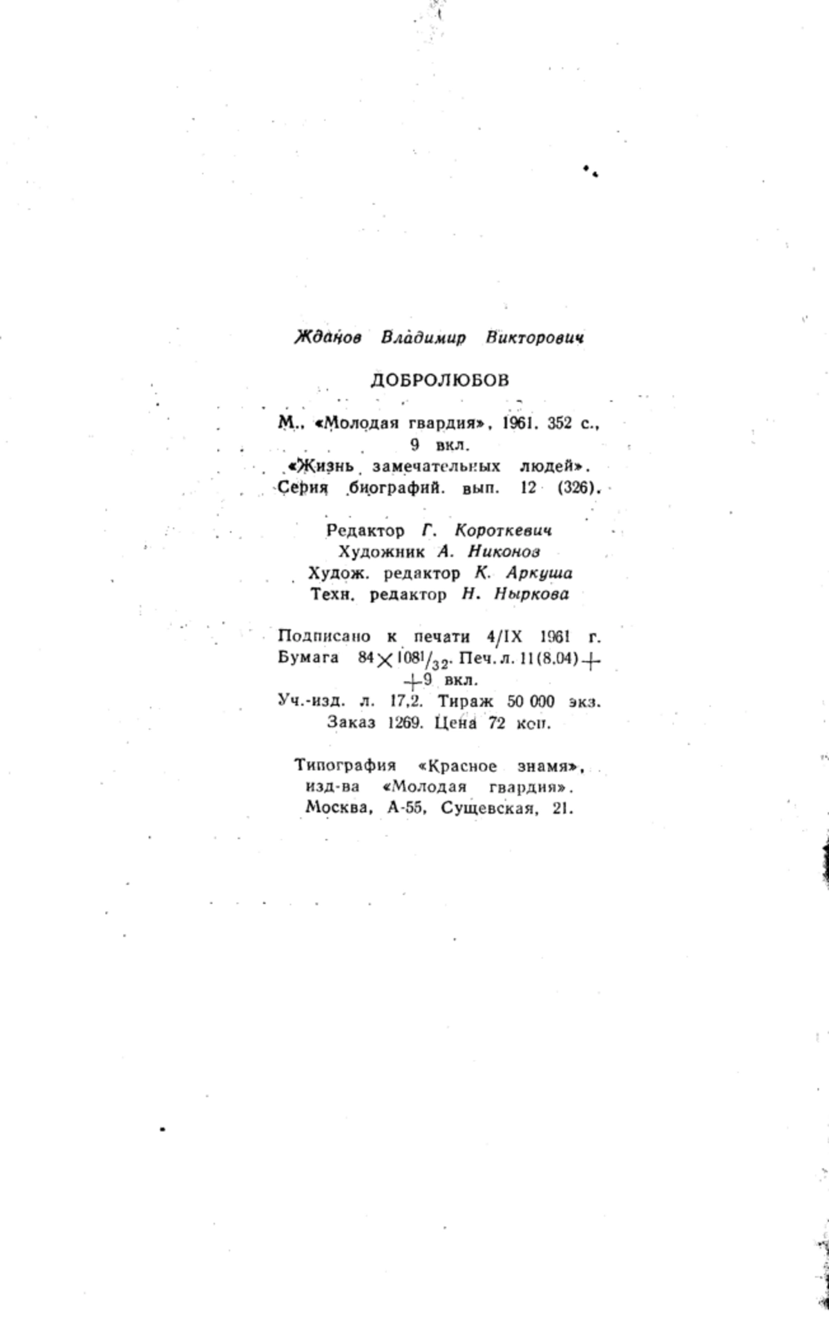 ДОБРОЛЮБОВ М., «Молодая гвардия», 1961. 352 с., 9 вкл. «Жизнь замечательных людей». Серия биографий. вып. 12 (326).