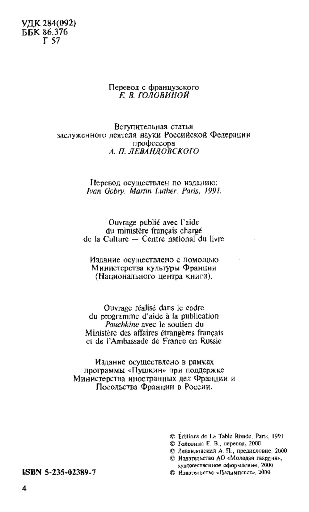Г 57 Лютер / Предисл. А. П. Левандовского. Пер. с фр. Е. В. Головиной. — М.: Мол. гвардия, 2000. — 513[15] с.: ил. — (Жизнь замечат. людей; Сер. биогр.; Вып. 786).