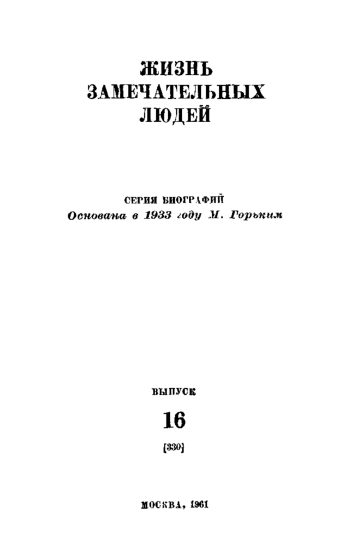 М., Молодая гвардия, 1961, стр. 336, вкл. («Жизнь замечательных людей». Серия биографий. Вып. 16(330)