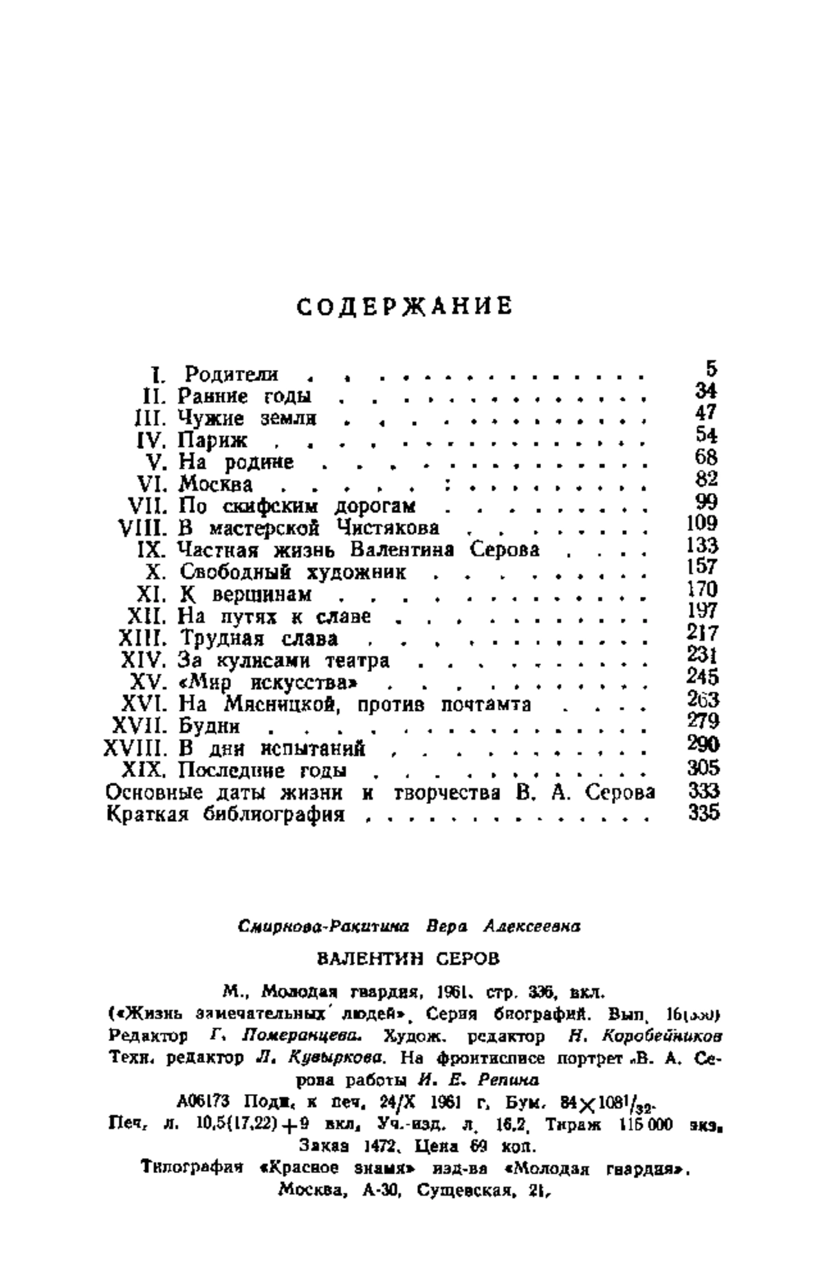 Ученье у Репина, заграничные странствия, Абрамцево, Академия художеств, занятия у Чистякова, дружба с Врубелем, Коровиным — внешняя линия жизни Серова весьма богата событиями. Даже свод материалов к биографии Серова и тот читался бы как увлекательная повесть. А настоящая книга — жизнеописание, созданное писательницей, автором многих биографических книг. Дать творческий и психологический портрет Серова, предельно раскрыть его индивидуальность, показать искания художника, его неустанное движение к совершенству — вот задача, которую ставил себе автор этой книги.