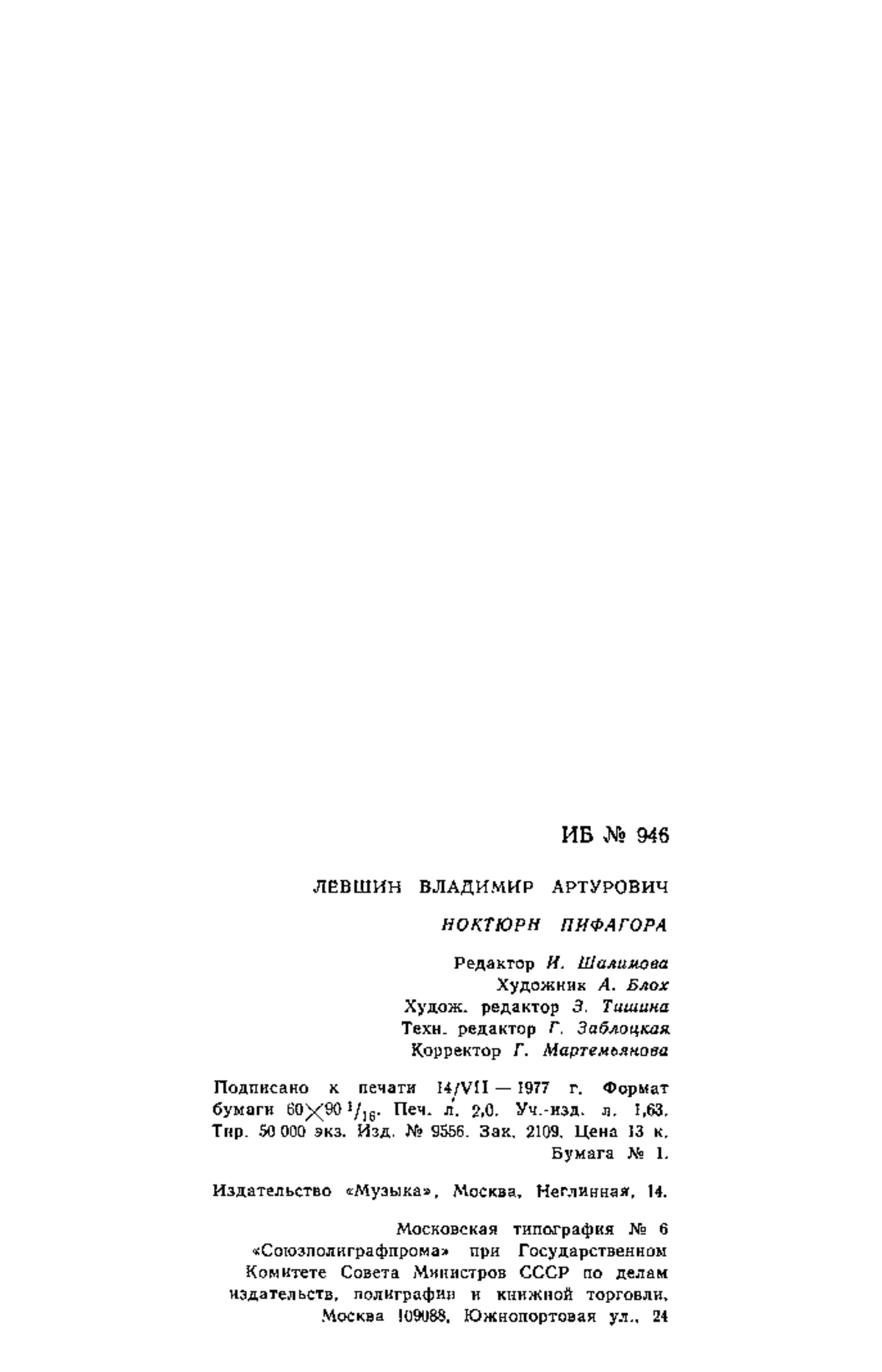 Ноктюрн Пифагора. М., «Музыка»,