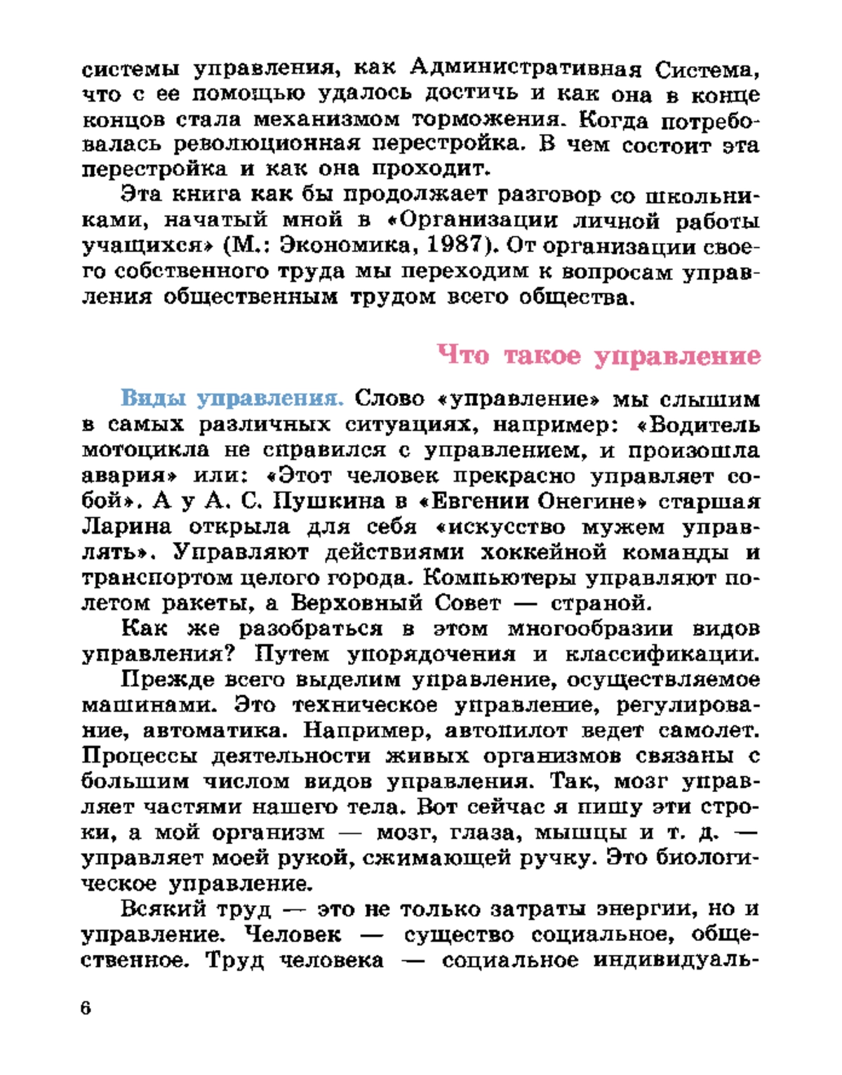 Эта книга об одной из самых сложных проблем современного общества, о том, как управлять основной нашей жизни – экономикой. В книге доктора экономических наук, профессора Попова рассказывается о науке управления экономикой, о ее законах, об управлении предприятиями в условиях перестройки. Школьники узнают, какие перемены происходят в этой области после XXVII съезда КПСС и последующих пленумов ЦК КПСС, какой вклад в перестройку может внести молодежь, вступающая в самостоятельную жизнь. Книга для старшеклассников.