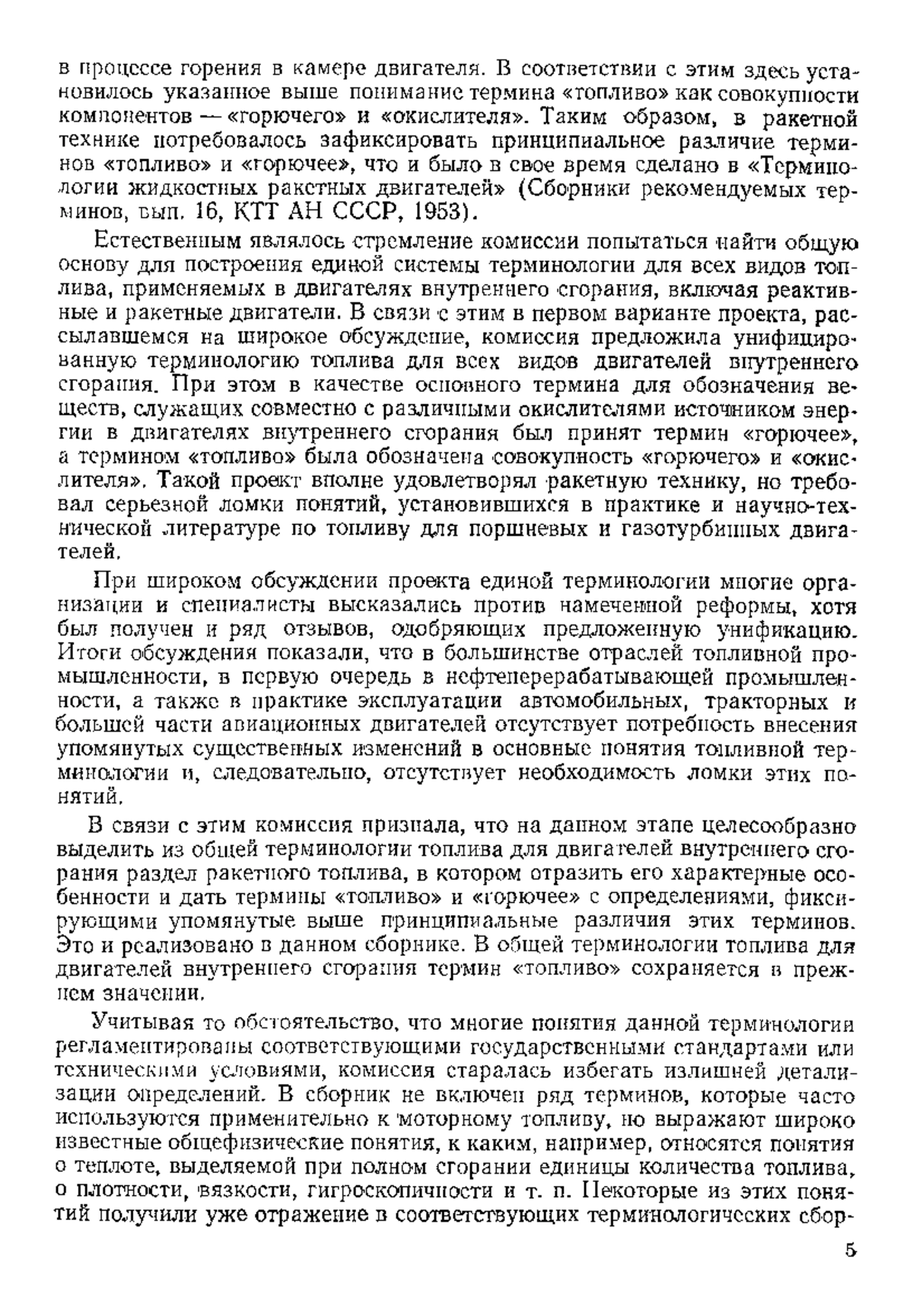 Настоящий сборник содержит терминологию топлива для двигателей внутреннего сгорания всех основных типов. Сборник состоит из четырех разделов: I — «Виды топлива»; II — «Состав топлива»; III — «Физикохимические характеристики топлива и процессов сгорания топлива»; IV — «Ракетное топливо». В сборник включено наряду с терминами, непосредственно характеризующими топливо, минимально необходимое для данной системы терминологии количество терминов, относящихся к процессам сгорания топлива. Еще сравнительно недавно к основным типам двигателей внутреннего сгорания относились лишь поршневые двигатели. Прогресс техники привел к широкому распространению и внедрению в практику новых типов двигателей внутреннего сгорания — газотурбинных, прямоточных воздушно-реактивных двигателей, а в последние годы — ракетных (жидкостных реактивных) двигателей. Перед составителями настоящего сборника возникла значительная трудность, связанная с задачей определения главного понятия данной терминологии — понятия «топливо» применительно ко всем двигателям внутреннего сгорания.