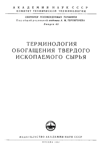 Книга: Сборники рекомендуемых терминов. Выпуск 43. Терминология обогащения твердого ископаемого сырья