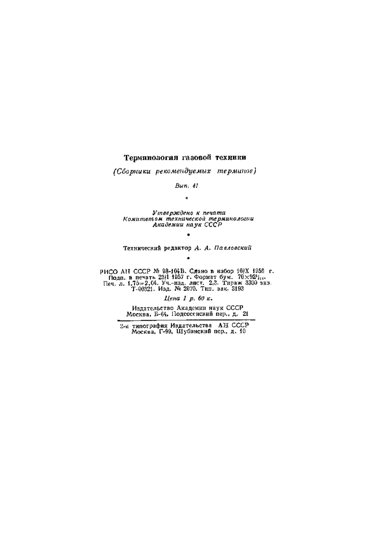 Предлагаемая терминология газовой техники разработана научной комиссией Комитета технической терминологии Академии наук. Данный сборник охватывает терминологию трех разделов газовой техники: 1) общие понятия, 2) очистка газов, 3) транспорт и хранение газов. В дальнейшем предполагается охватить также и терминологию по добыче, получению и применению газов. Проект сборника разработан комиссией на основе выпущенного в 1940 г. Бюллетеня КТТ, вып. XXXVI, причем были учтены полученные на этот бюллетень замечания. Комиссия рассмотрела также дополнительно подготовленные материалы по очистке и транспорту газов.